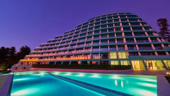 Находящийся в одном районе с самыми шикарными санаториями Сочи, этот элитный апартаментный комплекс легко превосходит любой из них в роскоши.