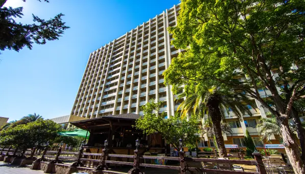 Комплекс элит-класса уютно расположился между зелеными территориями старейших санаториев курорта и реликтовыми лесами горы Бытха.