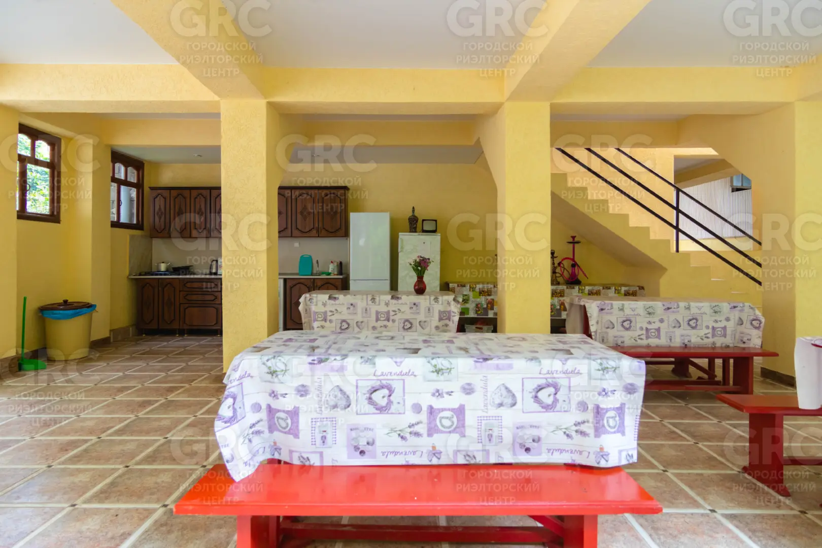 На участке находится два дома. В каждом доме имеются гостиничные номера. В каждом номере свой сан.узел, своя кухня. Также имеется большая столовая для жильцов дома.
