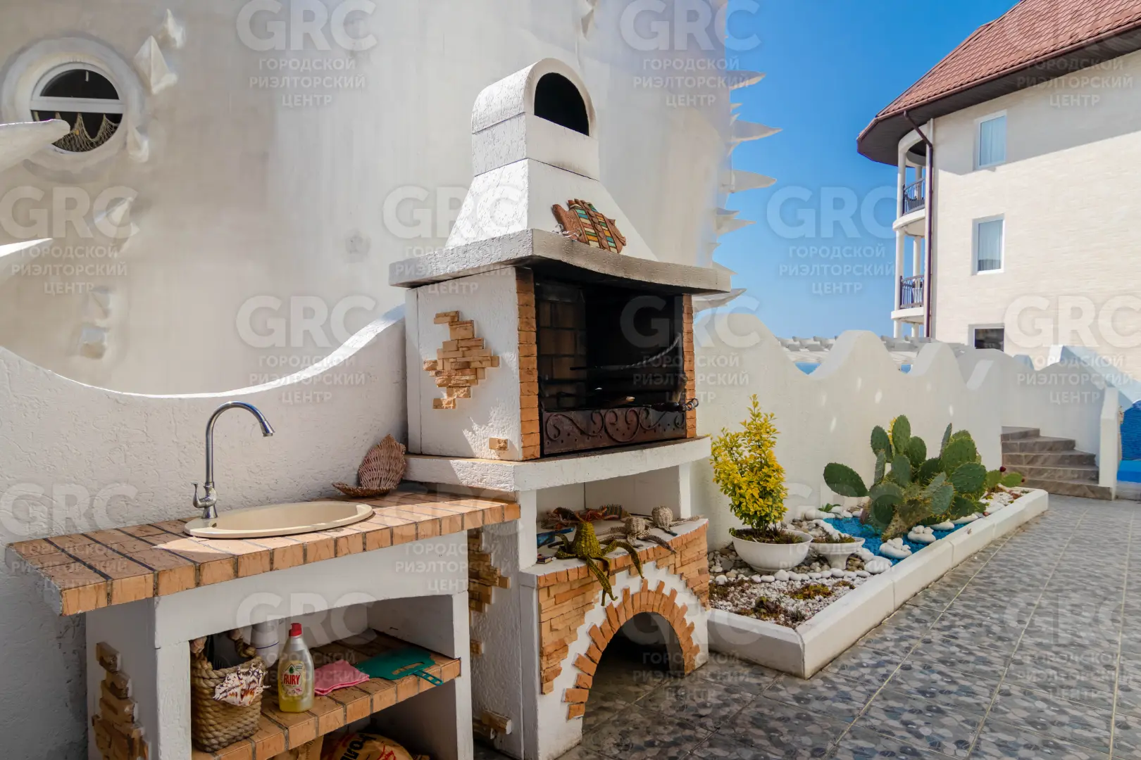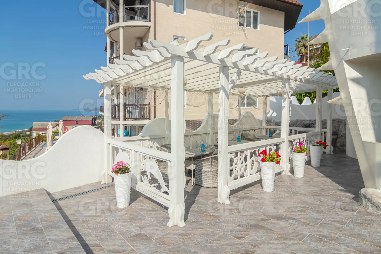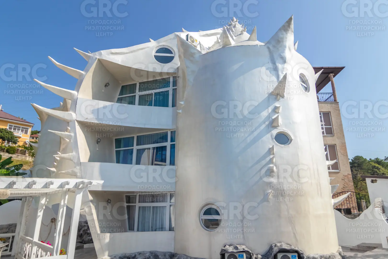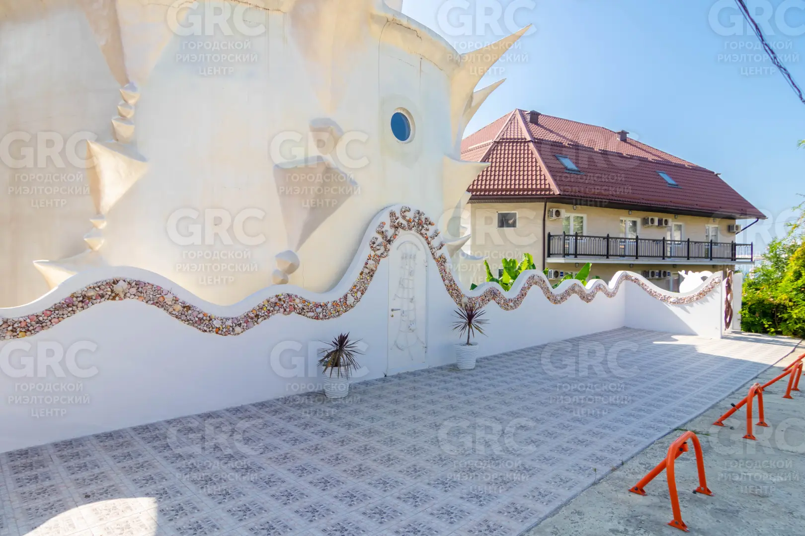 Продается уникальный комплекс для отдыха на Чёрном море. Самый необычный и незабываемый проект на побережье! Прохожие заворожённо останавливаются, фотографируются и мечтают заглянуть во внутрь. Экстерьер и интерьер поражают воображение. Две огромные морские Ракушки расположились на небольшой возвышенности, откуда открывается потрясающий вид на море. Морской стиль в каждой детали - кровати- ракушки, пиратские сундуки, паруса-шторы, изысканные барельефы на стенах, посуда , тысячи ракушек, привезенные с пляжей всего мира. Уютный дворик в средиземноморском стиле скрыт от посторонних глаз. Здесь прозрачный бассейн, зона отдыха с печью барбекю, экзотические растения.