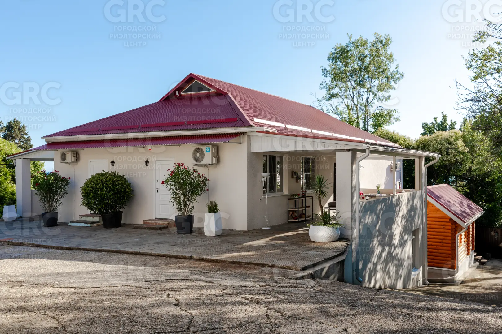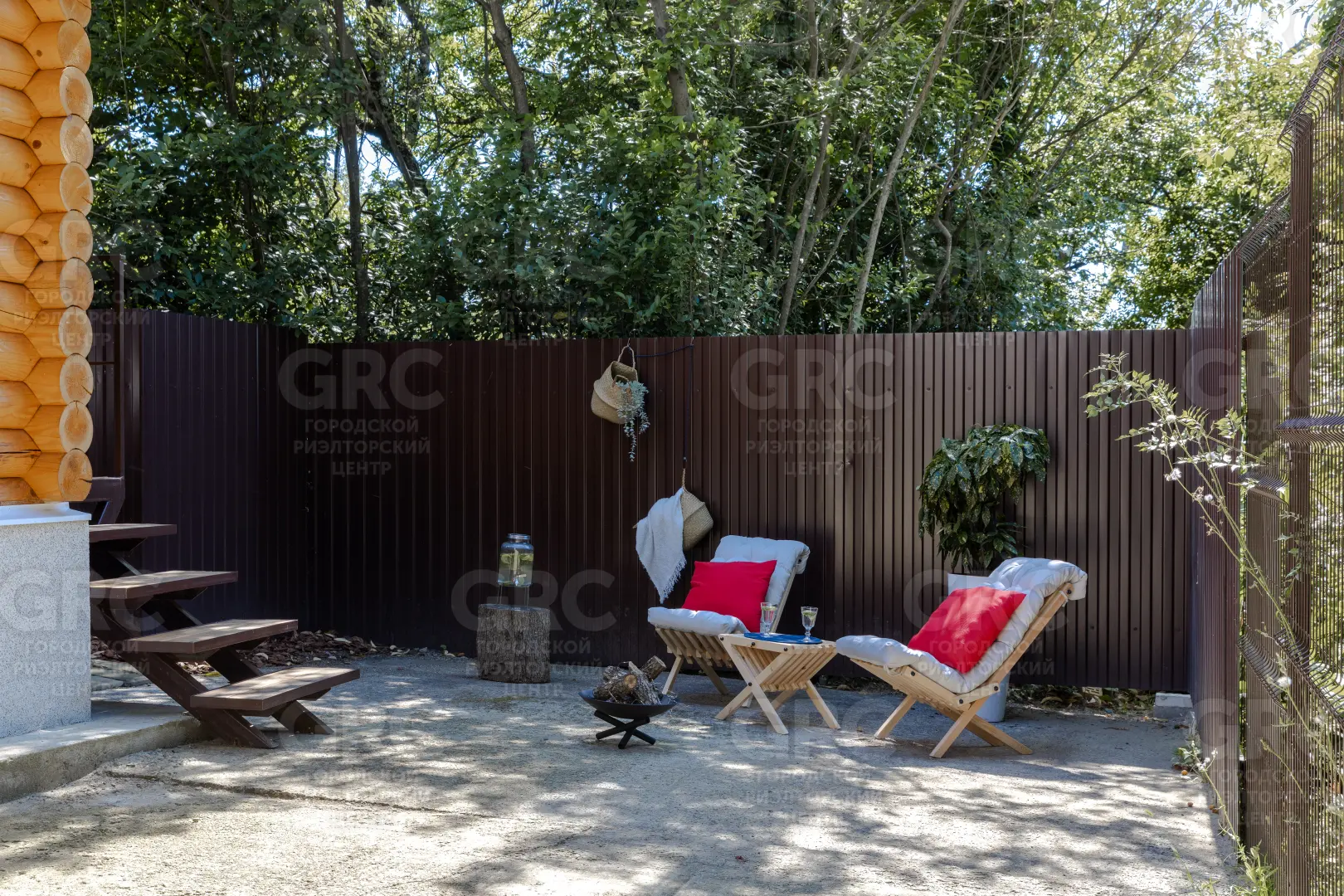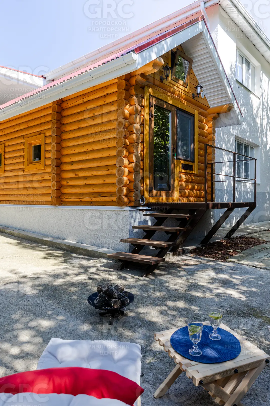 На территории открытая площадка, баня, небольшой сад, с плодовыми деревьями.