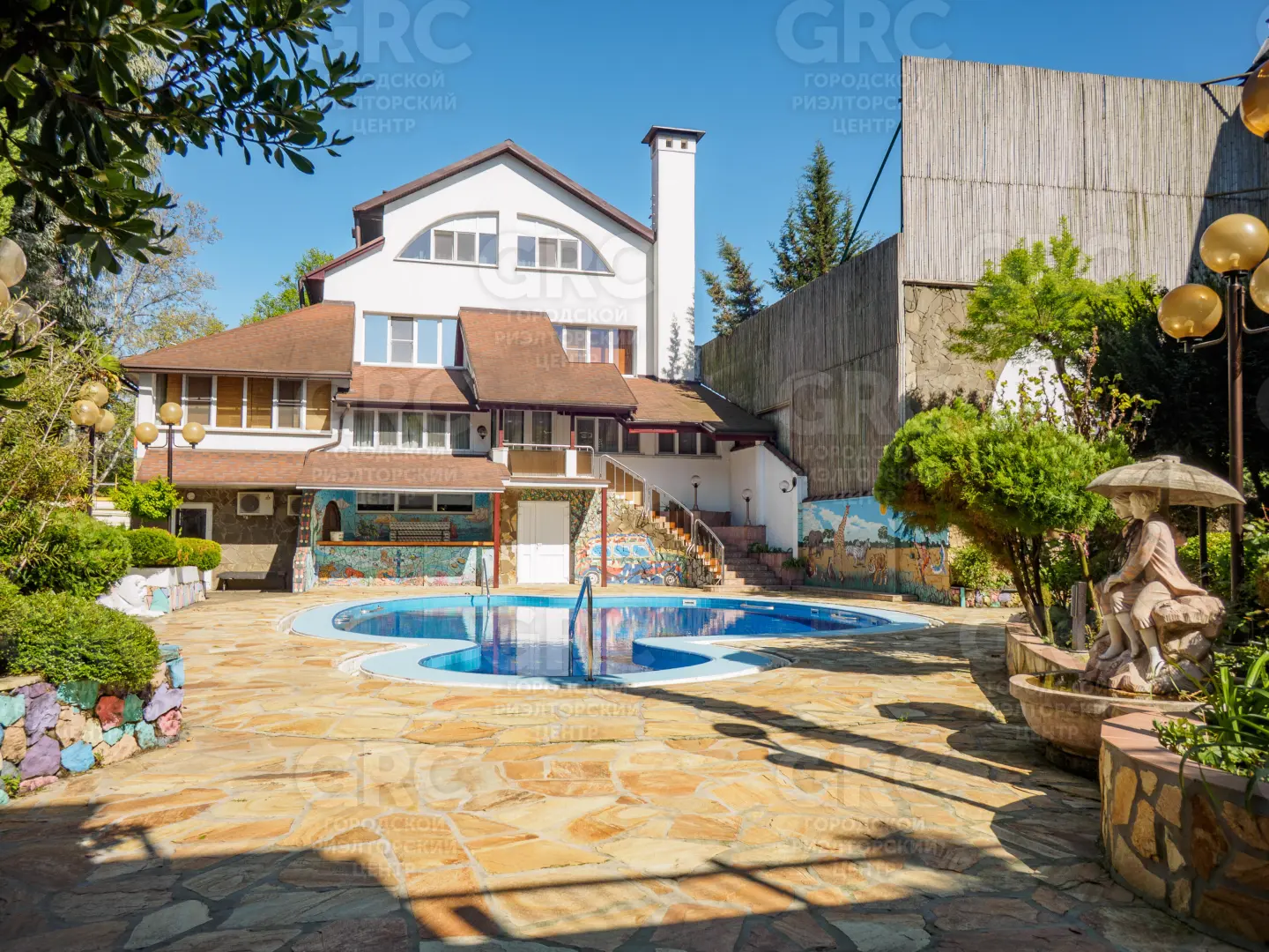 Мы рады представить вам уникальную резиденцию, расположенную в живописном поселке Дагомыс, в Лазаревском районе Сочи, всего в 500 метрах от моря. Этот великолепный дом с общей площадью 3 167,2 кв. м разместился на просторном участке площадью 0,48 га. Резиденция включает семь отдельно стоящих строений, среди которых великолепный четырехэтажный жилой дом с мансардой и террасами площадью 1 079,2 кв. м, уютный одноэтажный дом на 128,9 кв. м, а также кинозал и бильярдная с отдельной жилой зоной и двумя VIP-бунгало для гостей.