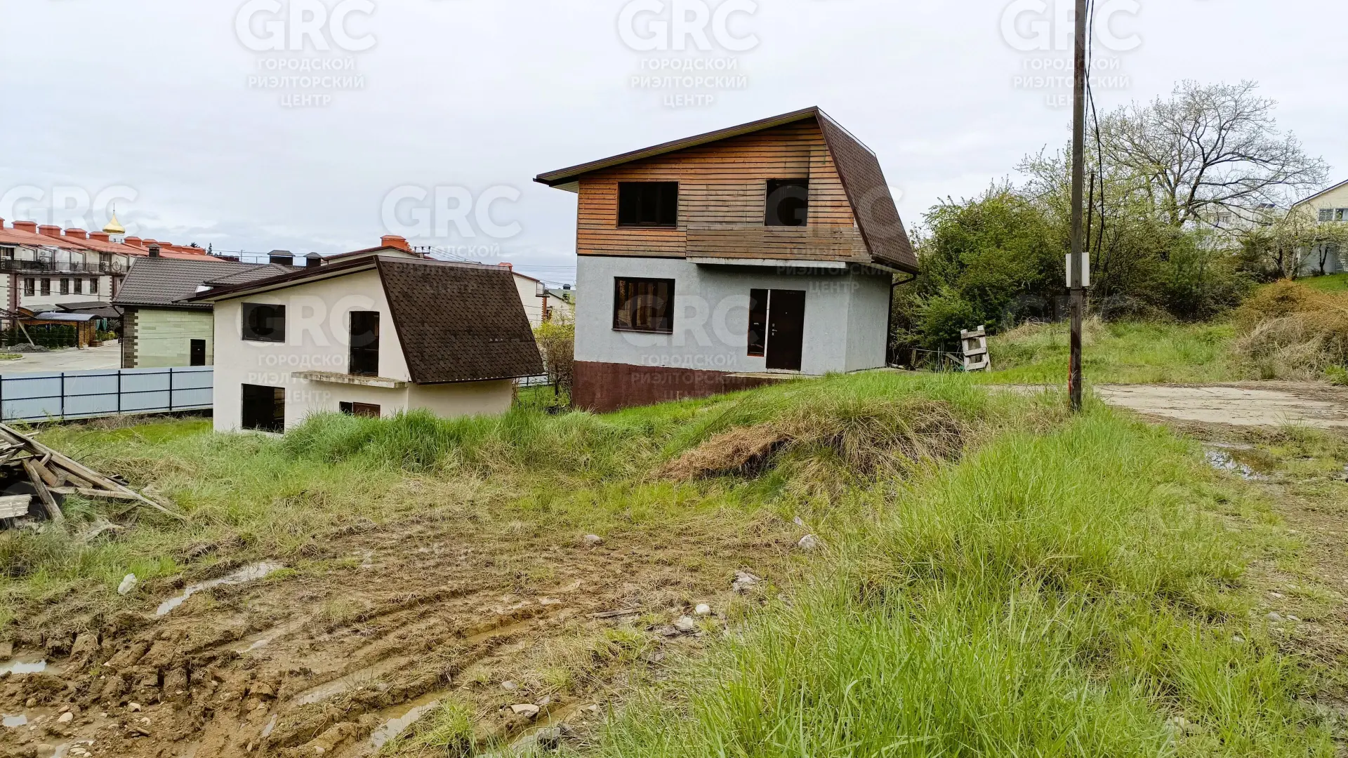 Дома в черновой отделке. Со второго этажа открывается вид на море.