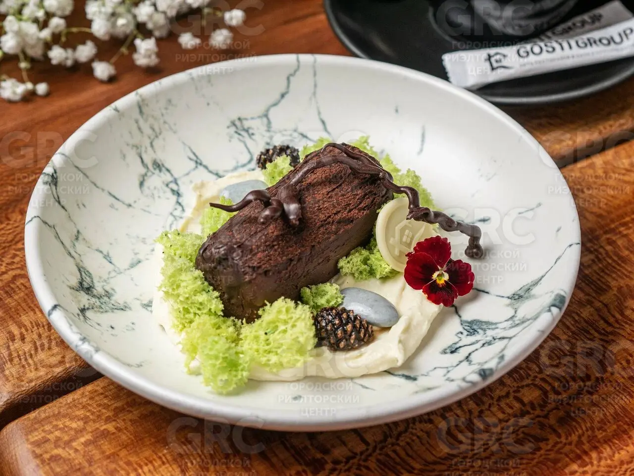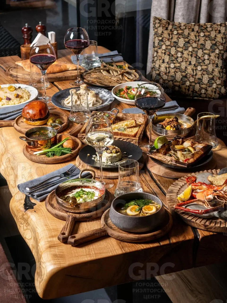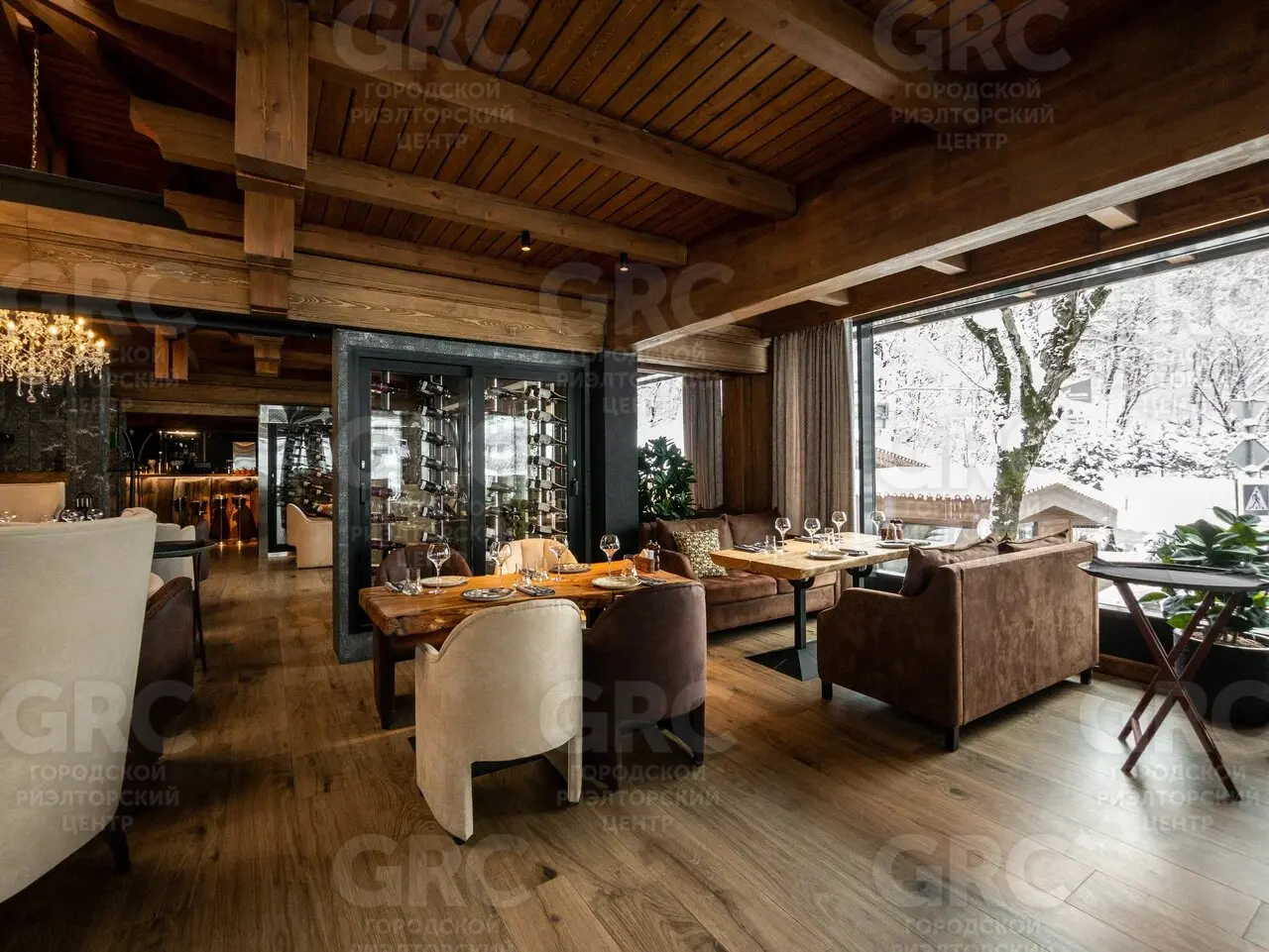 На первом этаже основной зал для гостей, вспомогательные помещения. Посадка в основном зале - 70 мест. Терраса/сад - 52 места.