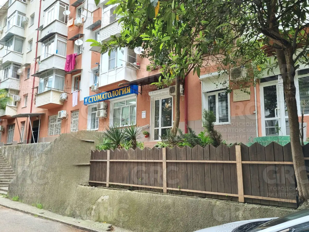 Отдельный вход в стоматологию. Помещение расположено в центральной части развитого микрорайона Бытха.