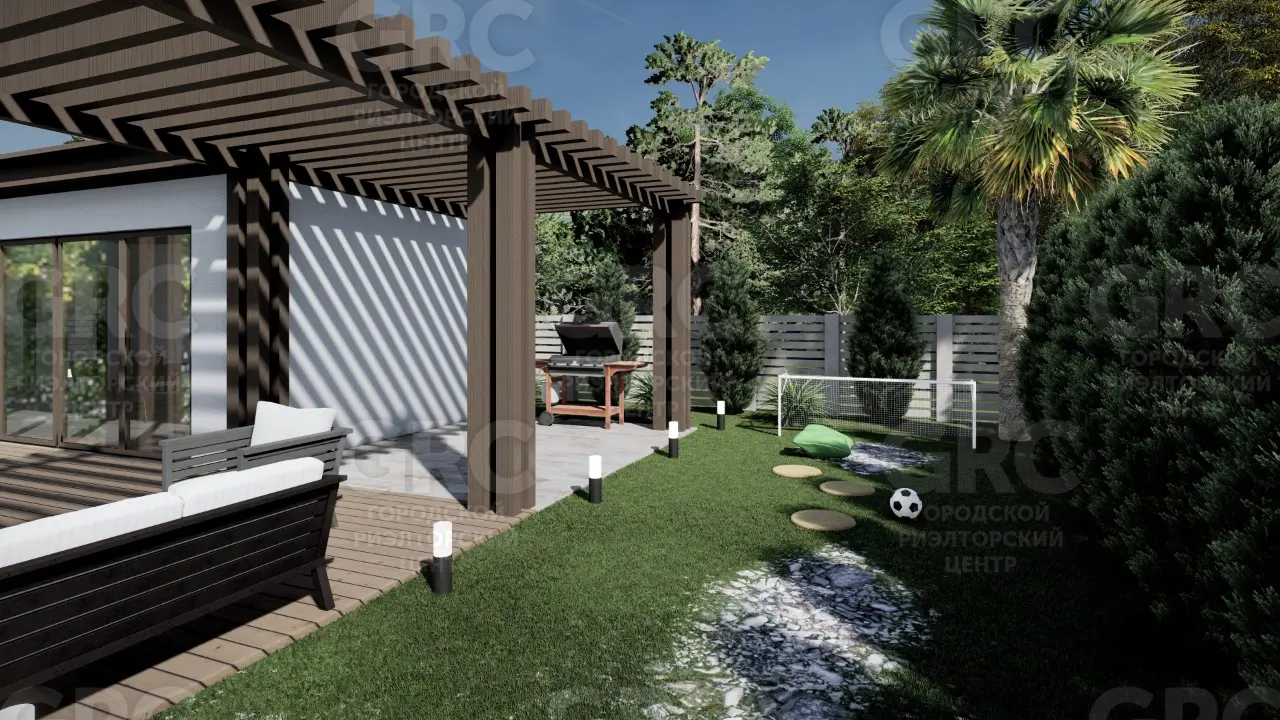 На участке площадью 7,5 соток вы найдете все необходимое для комфортной жизни. В доме предусмотрены просторная кухня-гостиная с открытым планом и высокими потолками 3,4 метра, которые после ремонта составят 3,1 метра. На втором этаже расположены четыре спальни, включая мастер-спальню с гардеробной и санузлом. Вторая спальня также имеет собственный санузел, а две оставшиеся спальни, площадью по 20 кв.м, делят между собой еще один санузел.