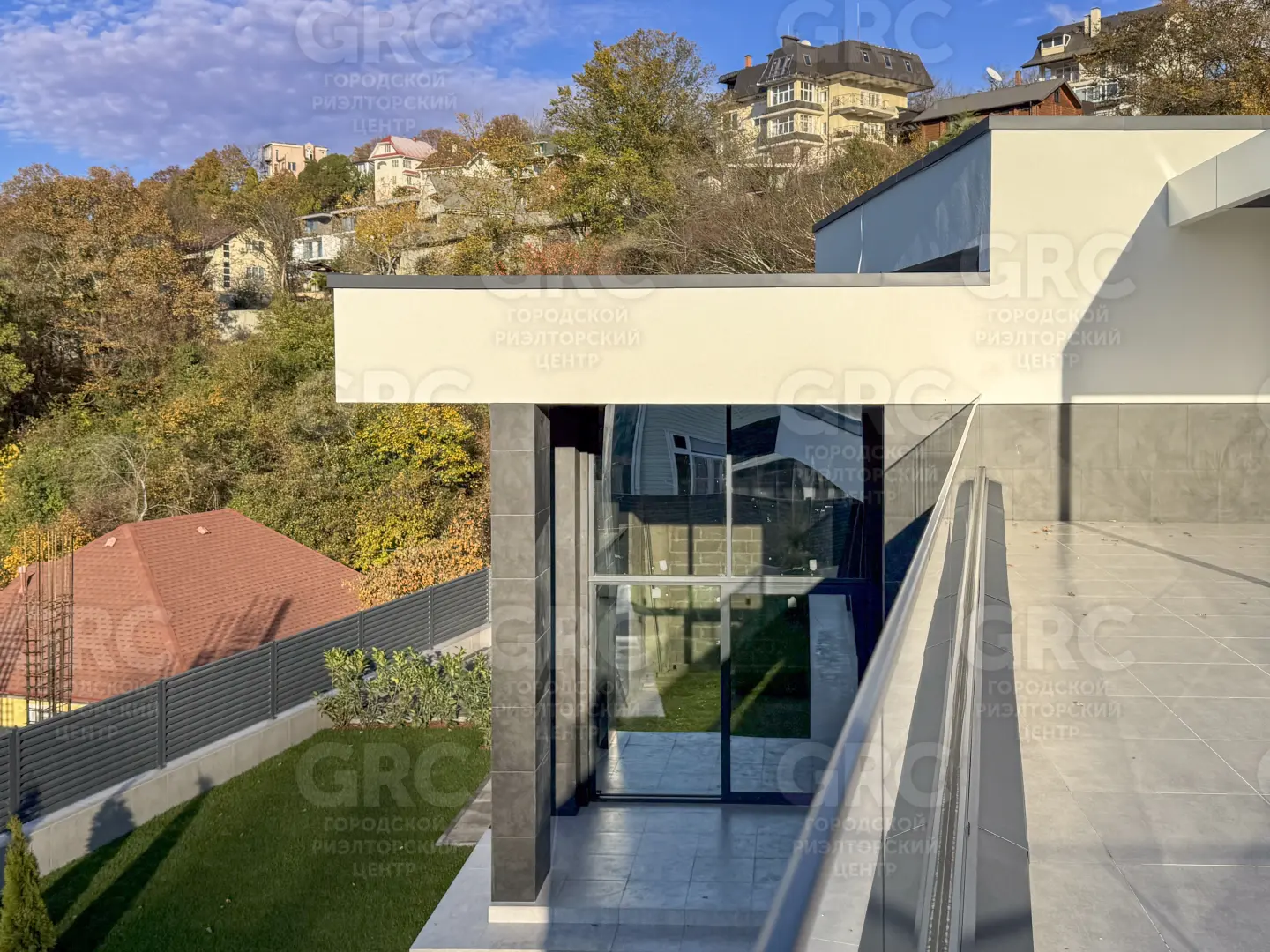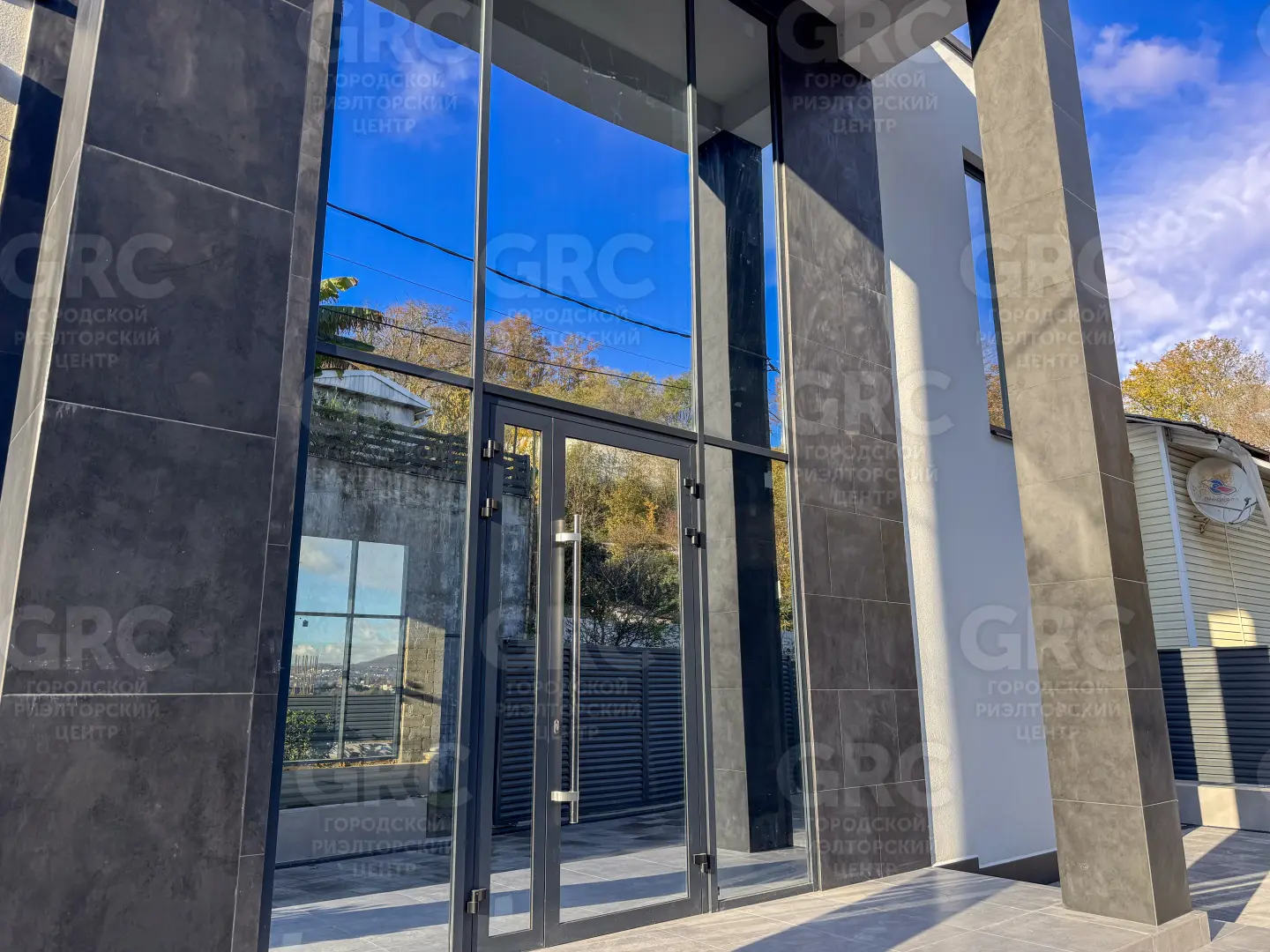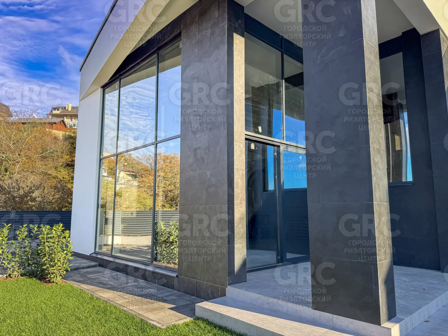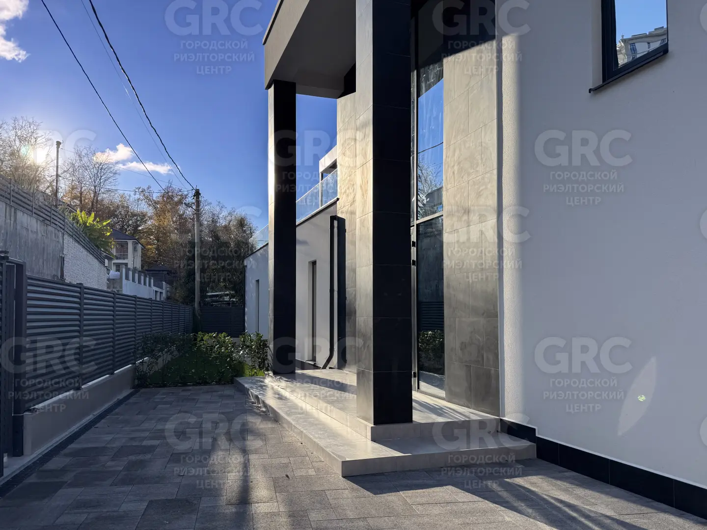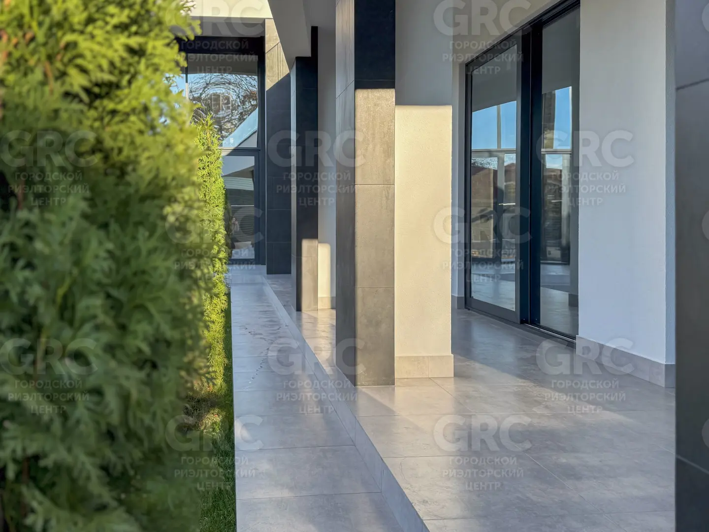 Фасад дома выполнен из керамогранита и декоративной штукатурки, что придаёт ему современный и стильный вид. Энергоэффективное остекление с алюминиевым профилем и раздвижная система для выхода на задний двор обеспечивают максимальное удобство и энергоэффективность. 🌿