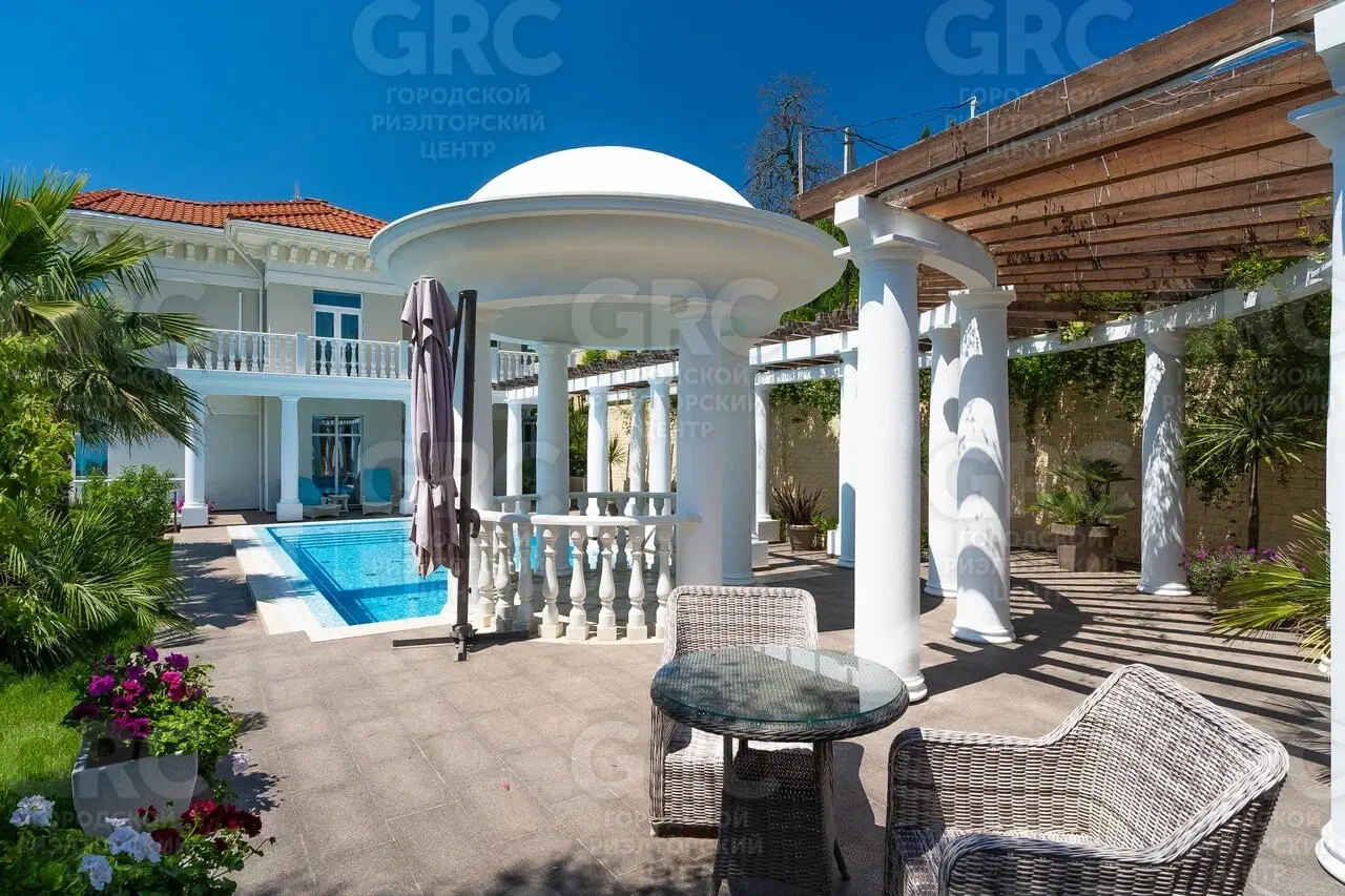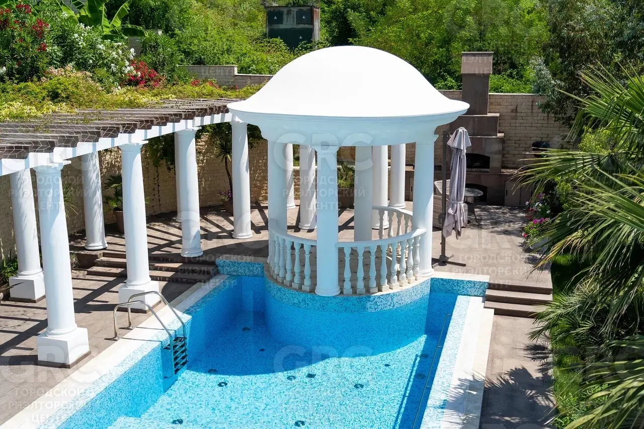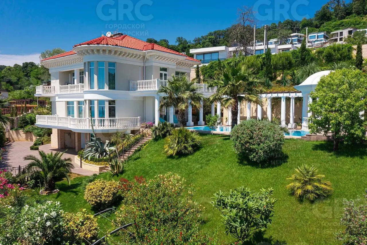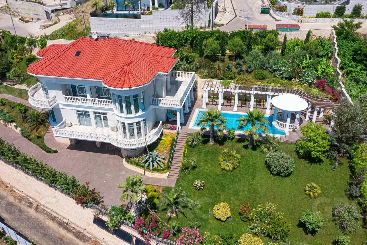Этот дом был построен с использованием только лучших материалов. Наружная отделка выполнена натуральным белоснежным мрамором и гранитом, а кровля покрыта немецкой черепицей. Более 400 видов растений украшают прилегающую территорию, создавая атмосферу уюта и красоты.