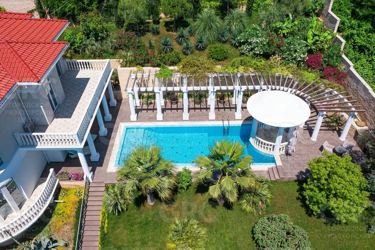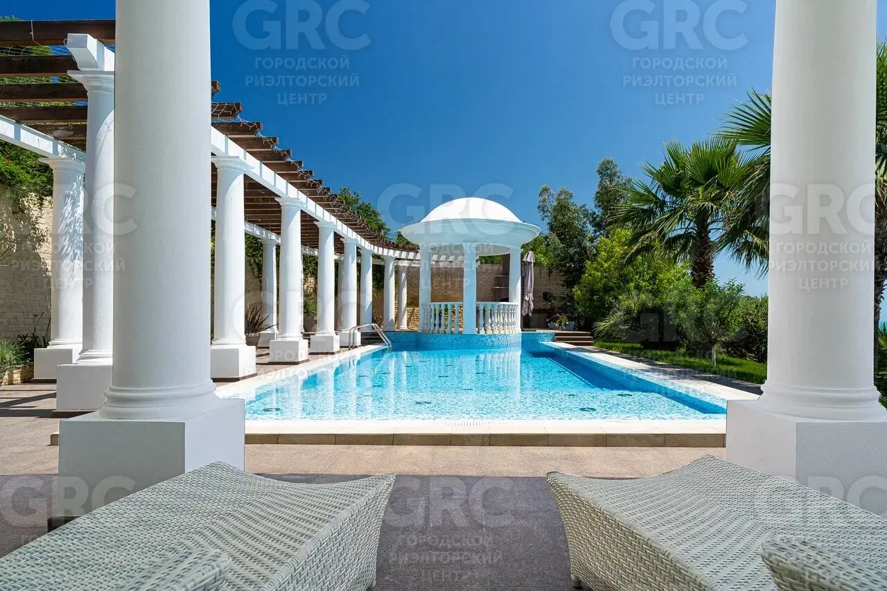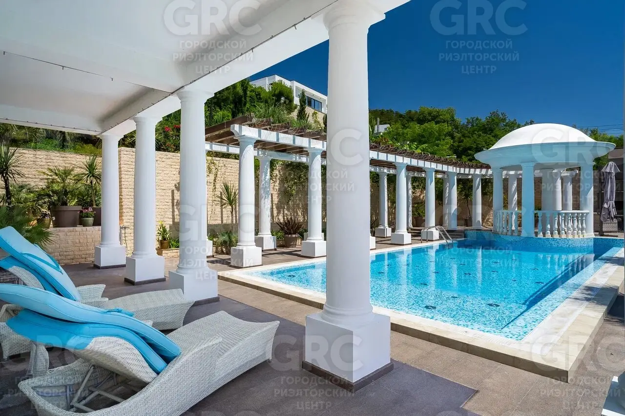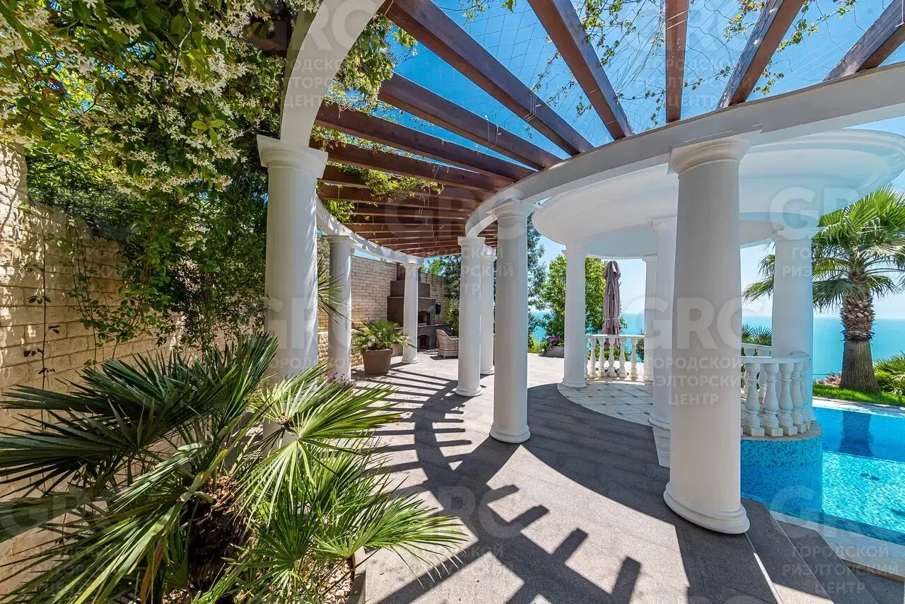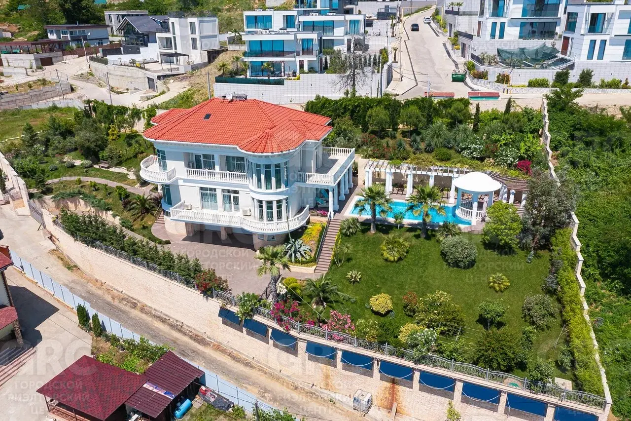 Этот дом был построен с использованием только лучших материалов. Наружная отделка выполнена натуральным белоснежным мрамором и гранитом, а кровля покрыта немецкой черепицей. Более 400 видов растений украшают прилегающую территорию, создавая атмосферу уюта и красоты.