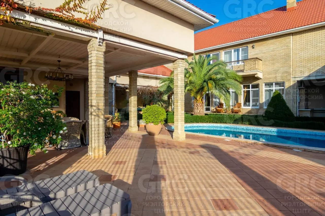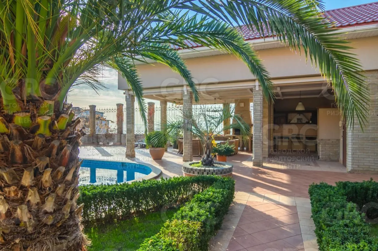 На территории дома расположены: баня на дровах, бассейн, мангальная зона и терраса с потрясающим видом на море. На участке площадью 9 соток (СНТ) выполнено ландшафтное озеленение.