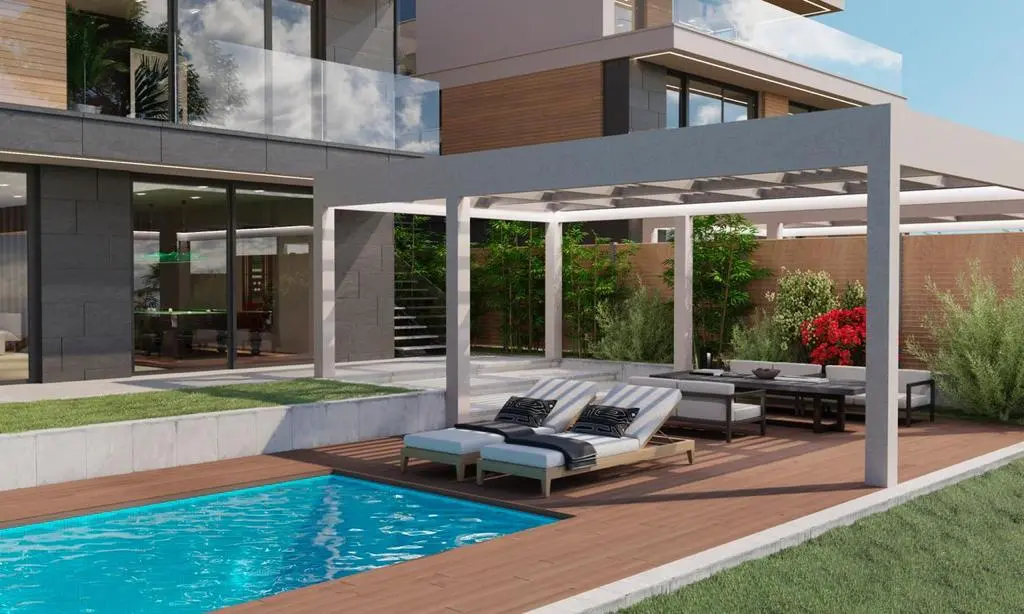 Гараж на два авто, зона барбекю , бассейн, ландшафтное озеленение! Участок 7 соток, все коммуникации центральные : свет , вода , газ, канализация.