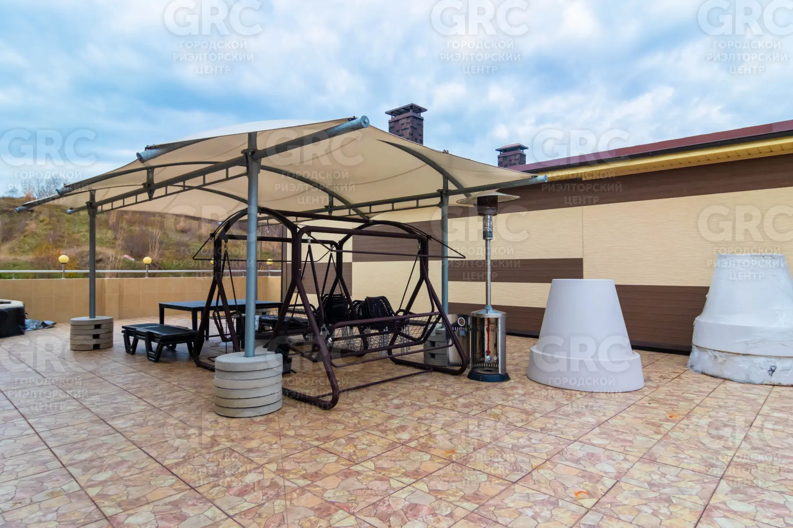Кровля эксплуатируемая: 3 vip квартиры общей площадью 261 м2, мини бассейн с лежаками, зона отдыха с навесом