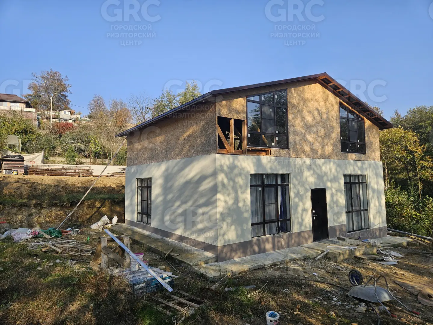 Дом двухэтажный, капитальный, в основании - 16 железобетонных свай и плита. Первый этаж: монолитный каркас с блочным заполнением. Второй этаж мансардный, в основе каркас, обшивка из ОСП-плит с утеплением. Ремонт выполнен на первом этаже, второй этаж без ремонта.