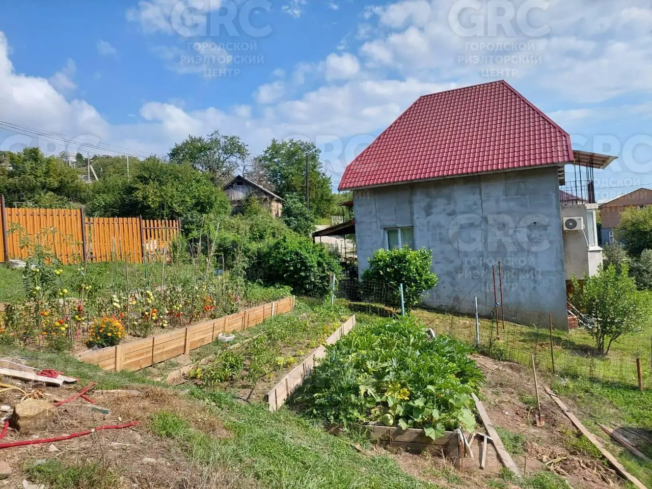 Участок 7 соток, полностью террасирован, имел небольшой склон изначально.