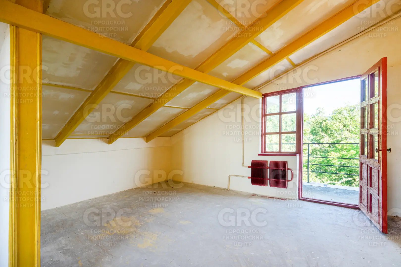 Основной этаж: входная группа, кухня, одна небольшая и одна средняя комната с большим балконом и живописным видом на лес и горы.