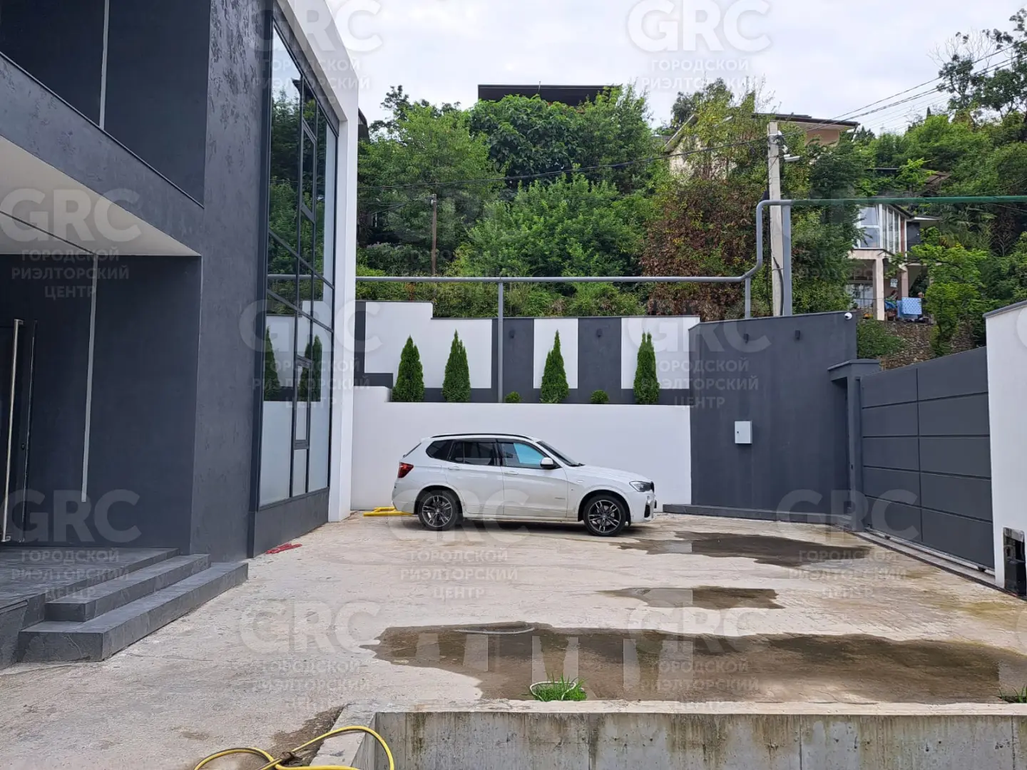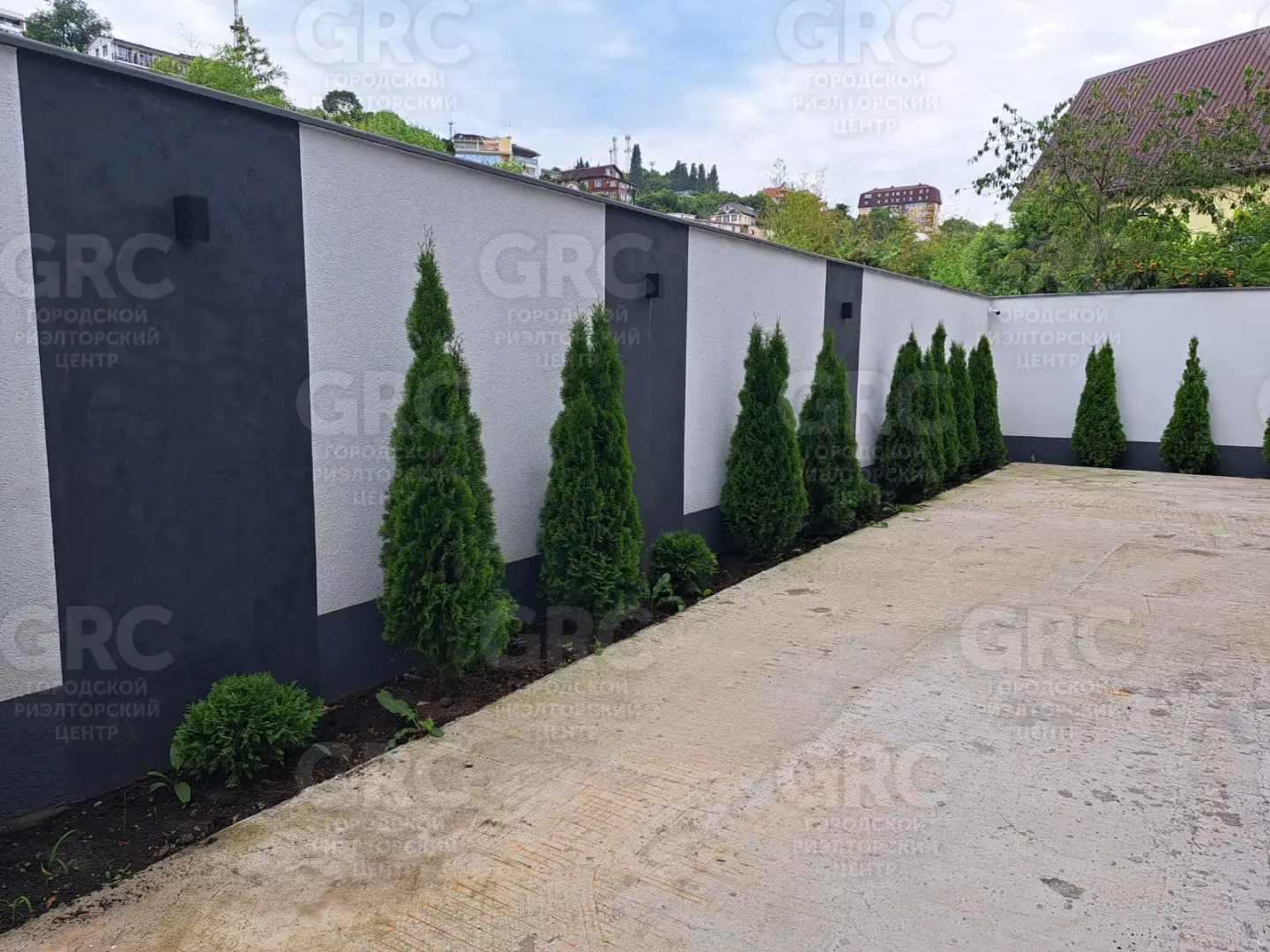 На территории бассейн, зона барбекю, ландшафтное озеленение, два парковочных места.