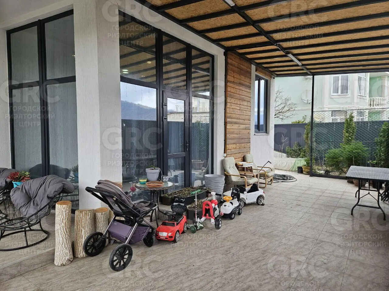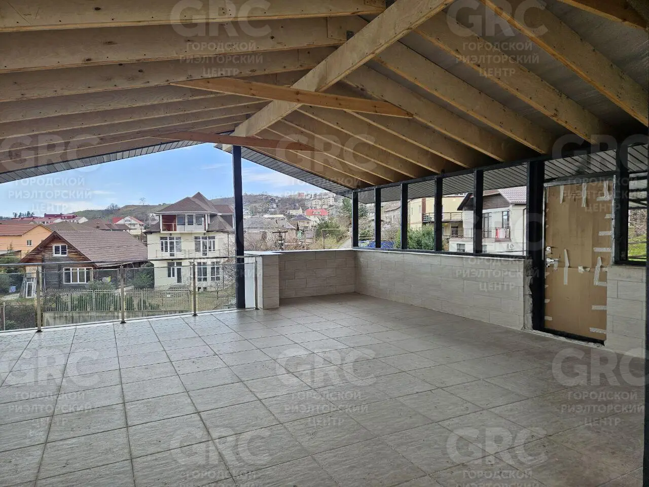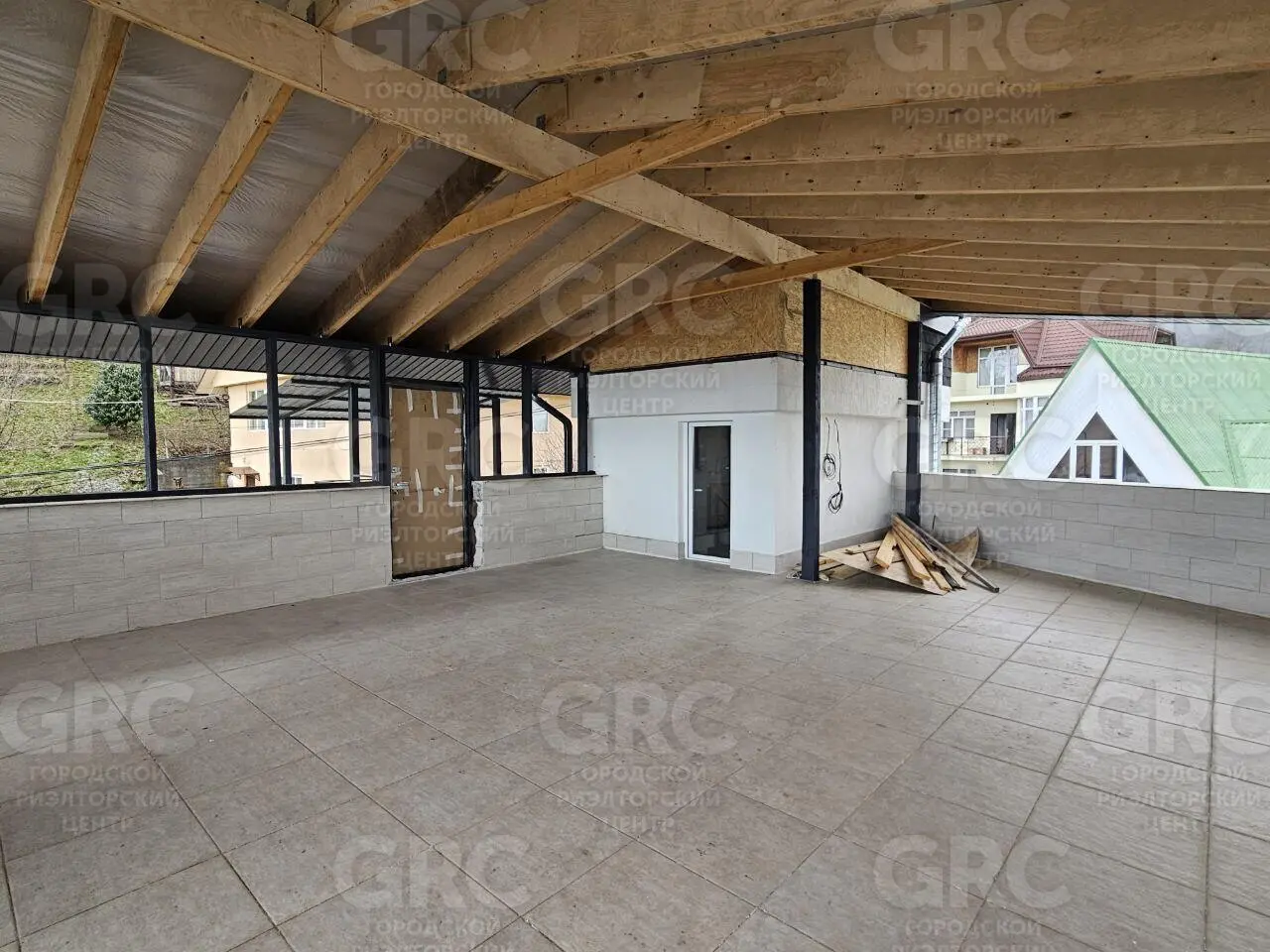 3 этаж: крытая эксплуатируемая кровля с потрясающим видом на горы! При минимальных вложениях кровлю можно превратить в жилой этаж (по документам дом 3-этажный). На этаже предусмотрена мокрая точка и канализация, есть дополнительный вход по наружному крыльцу.