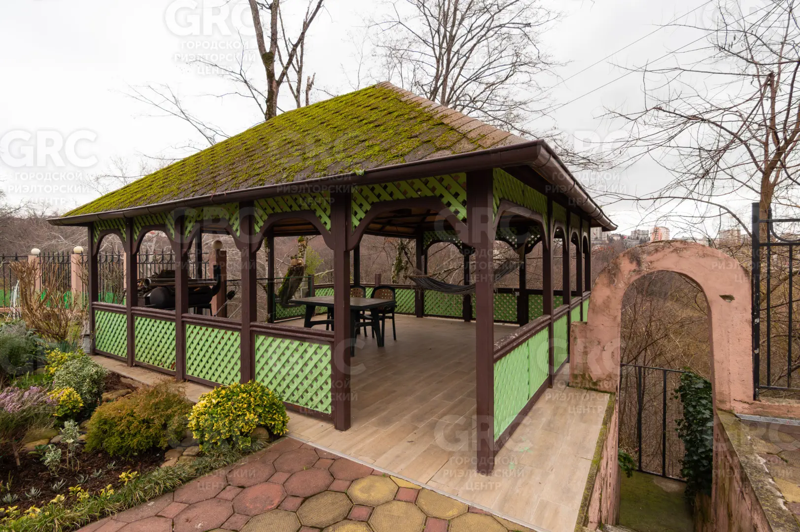 На участке площадью 5,71 соток вы найдете уединение и красоту природы. Здесь расположена большая и уютная беседка, а декоративное озеленение включает в себя красивые цветы, газонную траву и небольшой сад с малиной, смородиной, черешней, мандаринами, лимонами и другими растениями. Участок находится в тихом и уединенном месте, в тупиковой зоне, что обеспечивает спокойствие и приватность.
