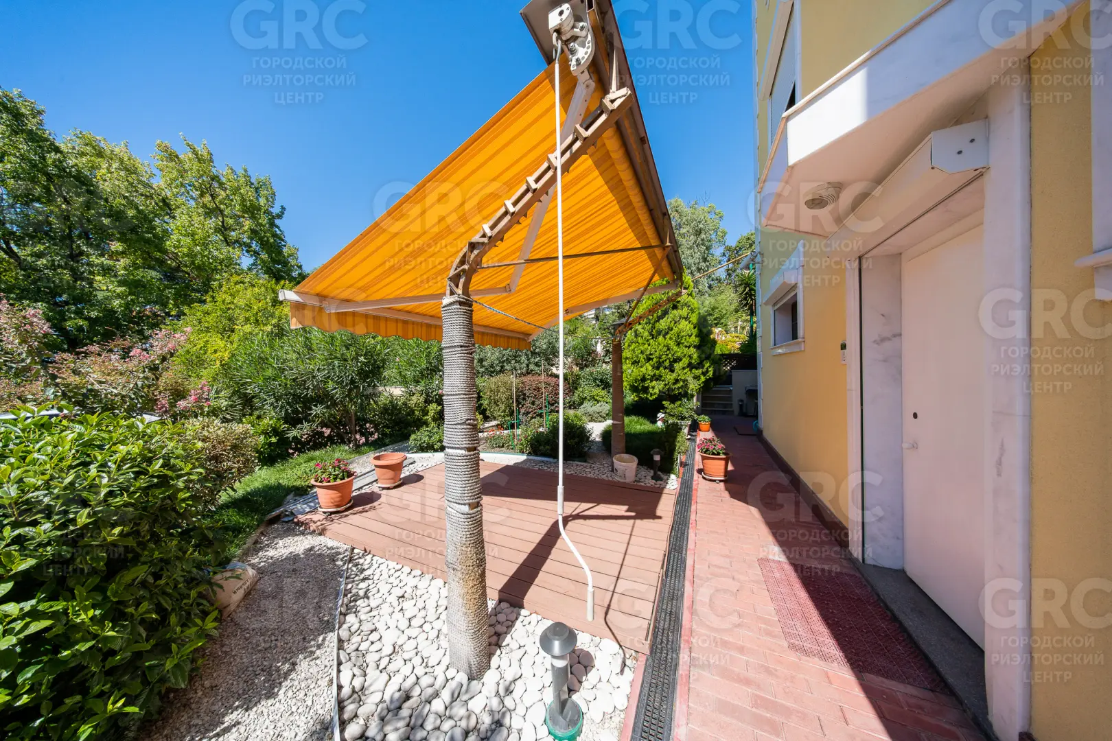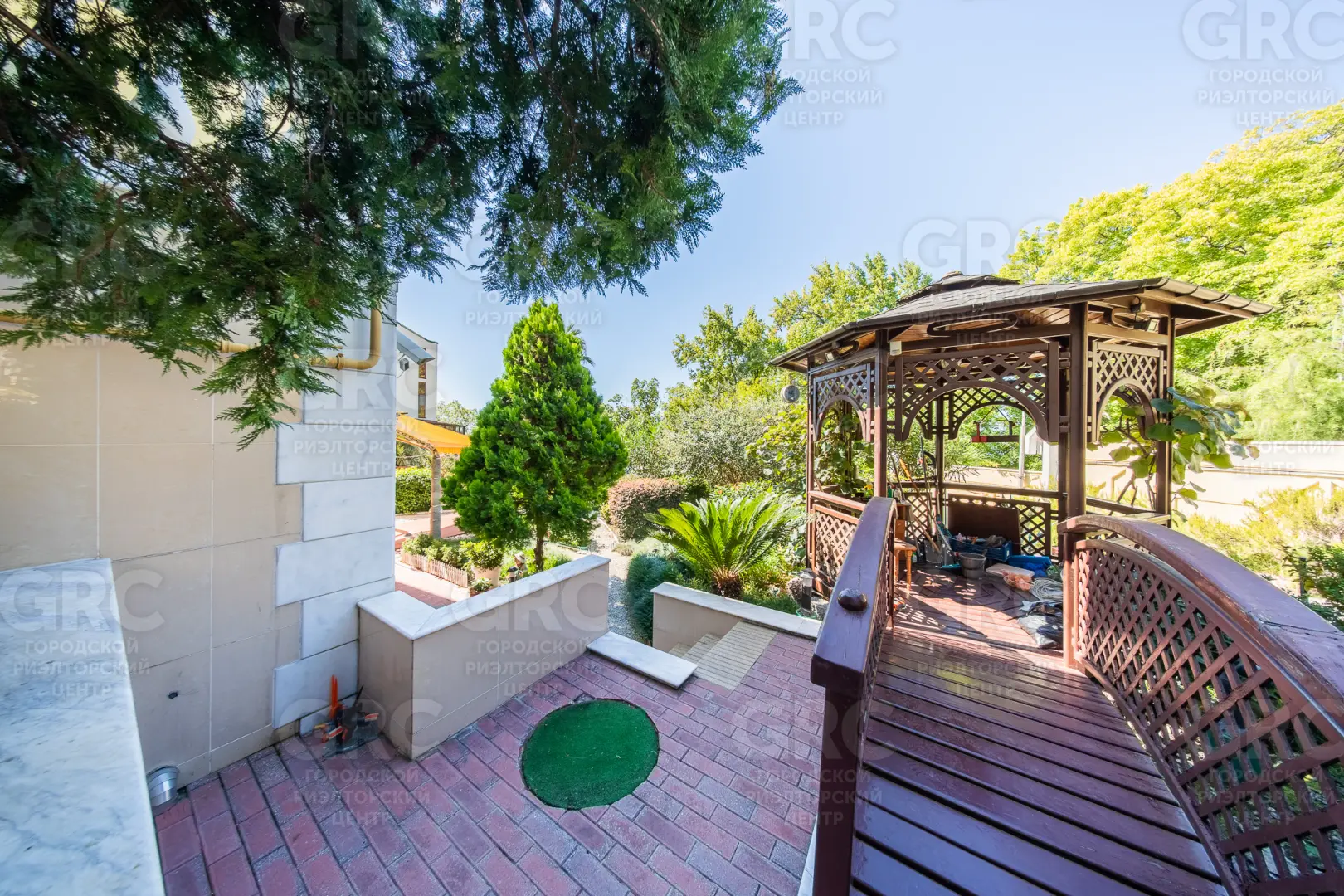 Придомовая территория оформлена ландшафтным озеленением, есть беседка для отдыха.