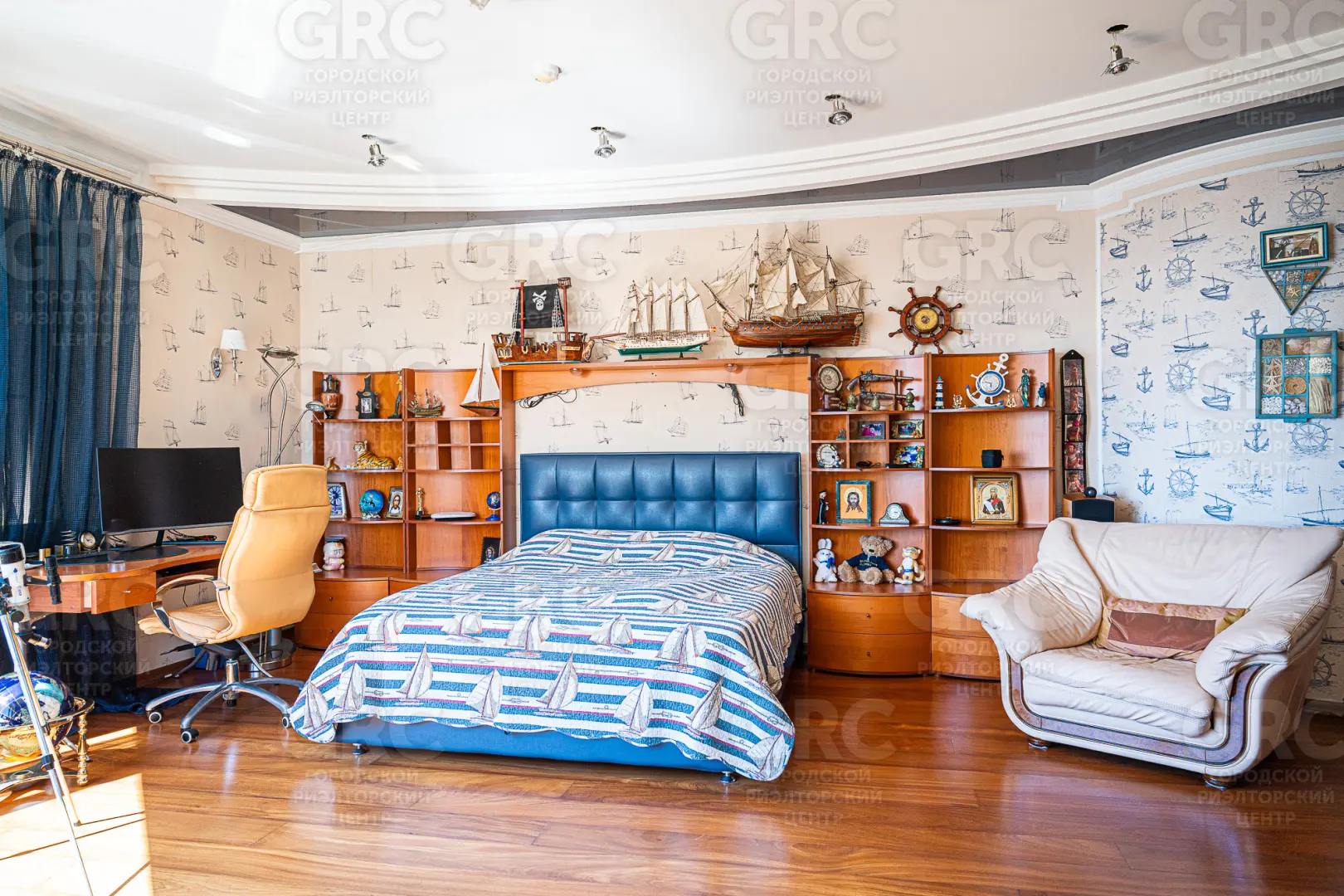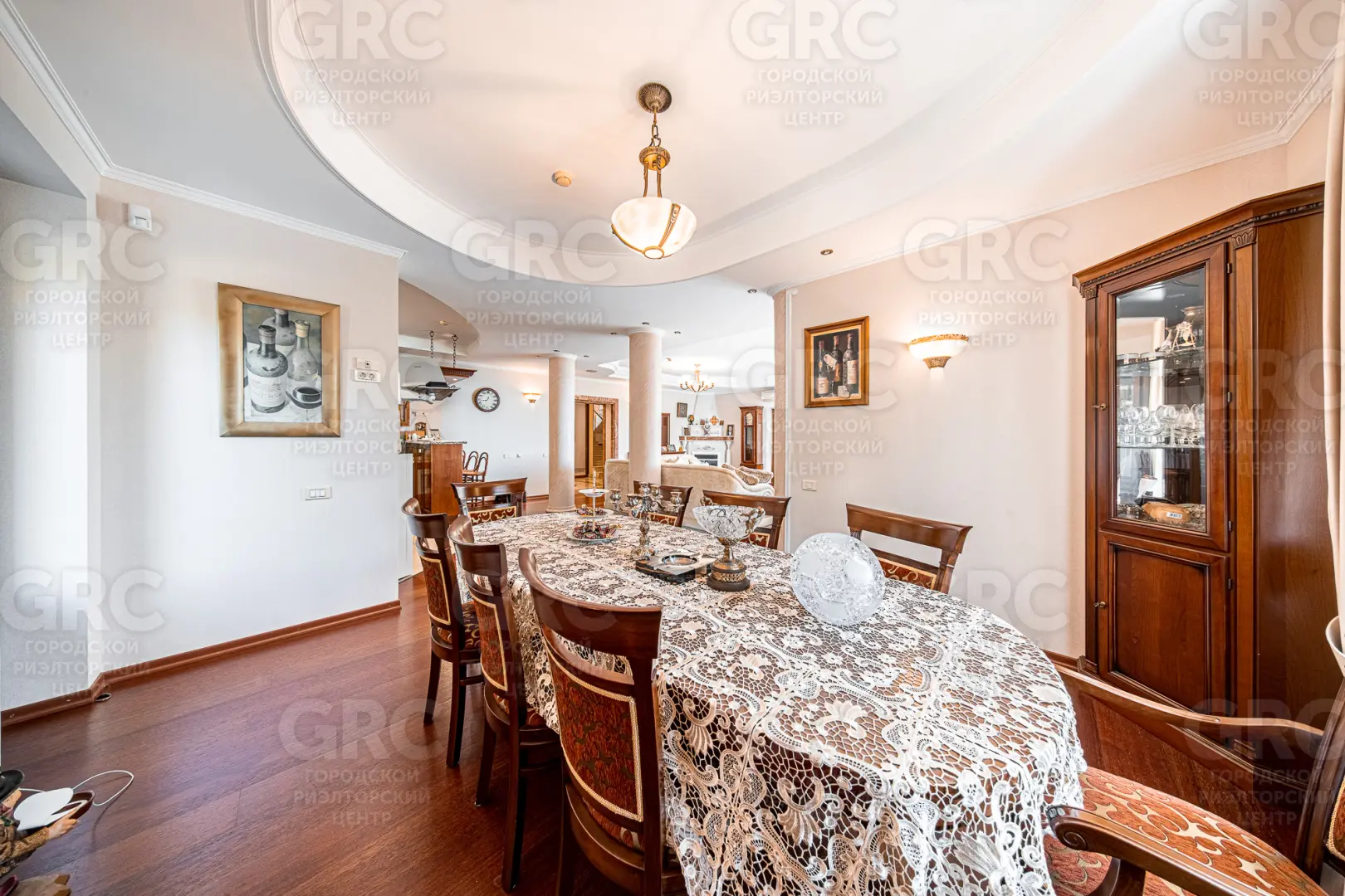 в доме пять спален, гостиная, кухня, столовая.