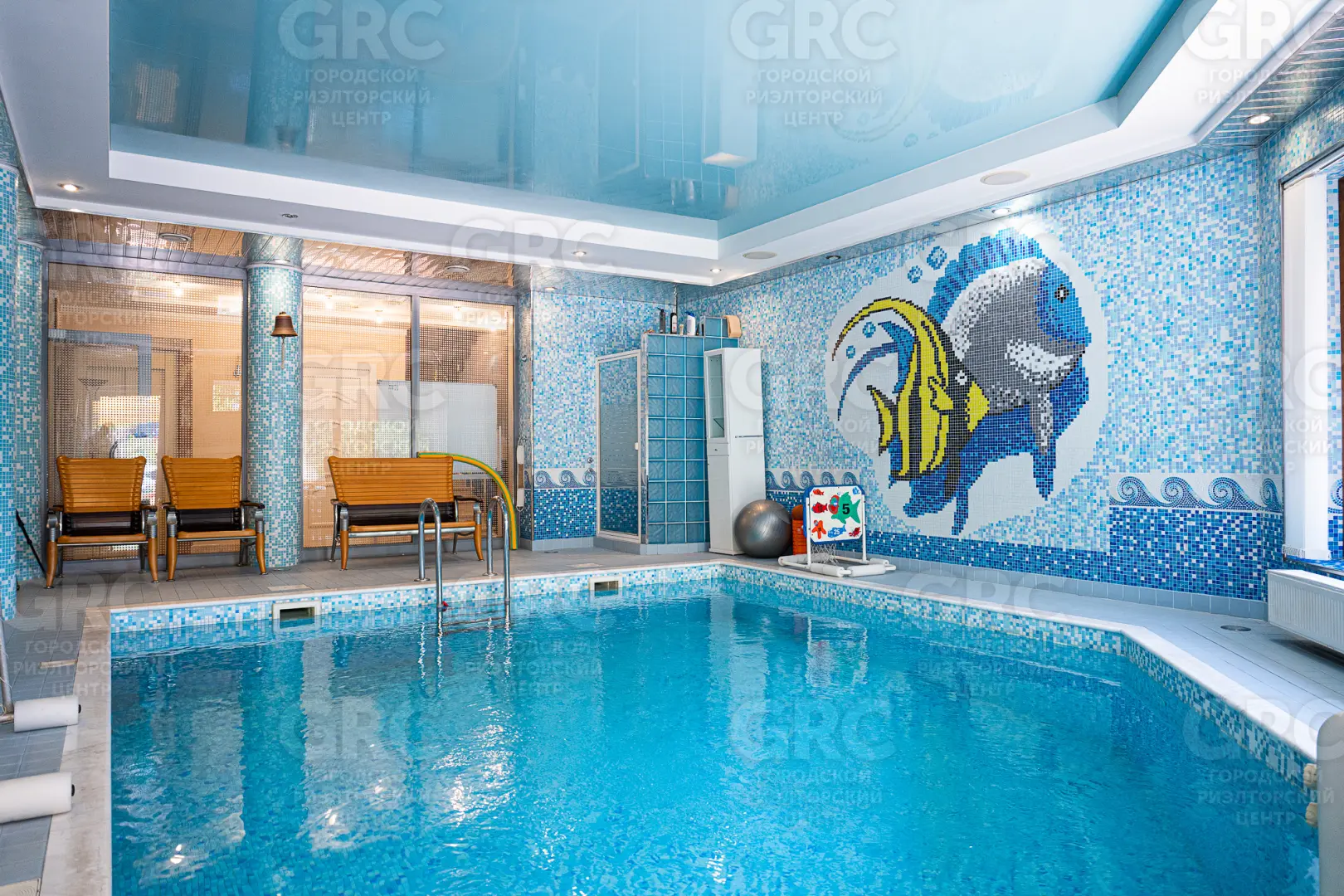 В доме установлен лифт, на первом этаже бассейн.