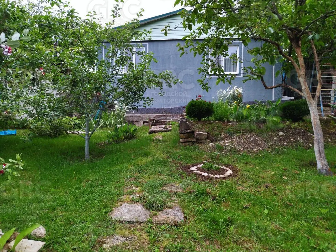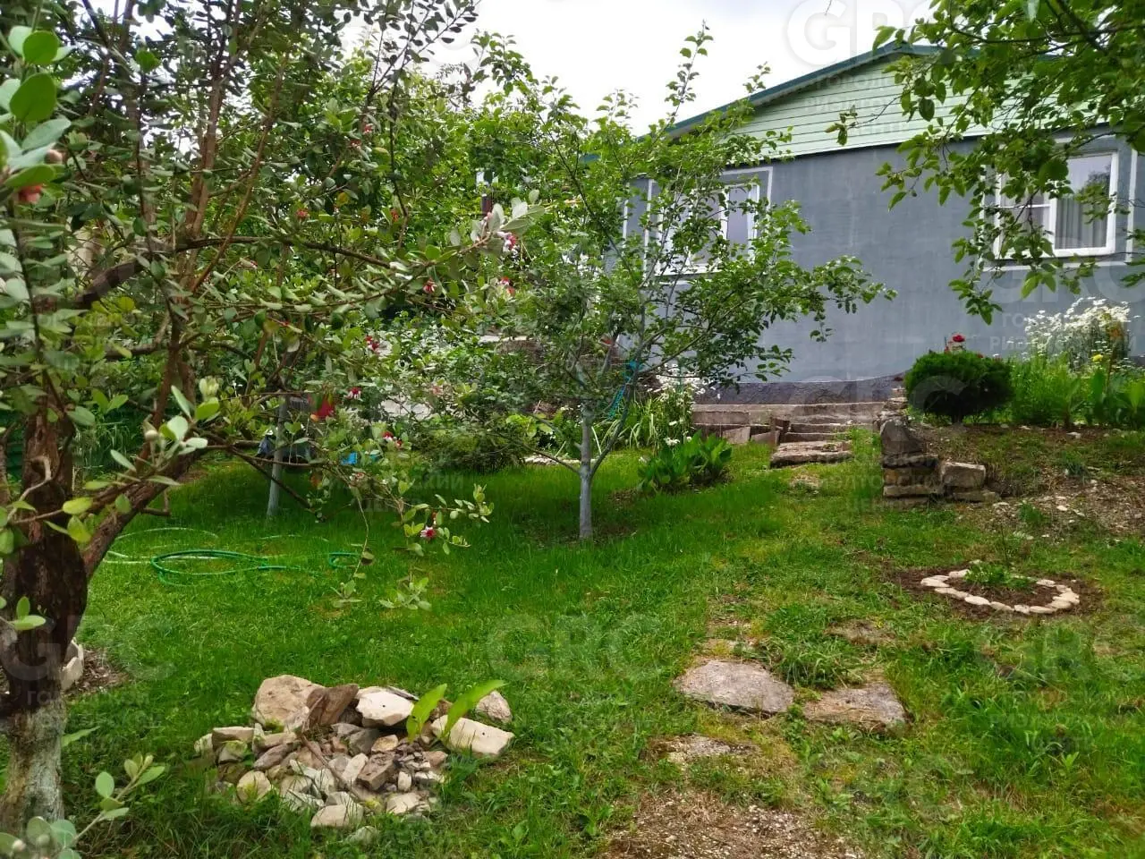 Участок не топит, так как имеет небольшой склон. Есть небольшой ухоженный сад с плодовыми фруктовыми деревьями