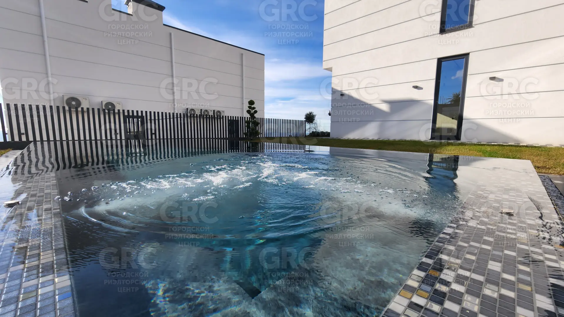 Дом имеет качественную отделку из премиальных материалов, что создает атмосферу роскоши и комфорта. На территории участка вы найдете бассейн с противотоком и ухоженное ландшафтное озеленение.