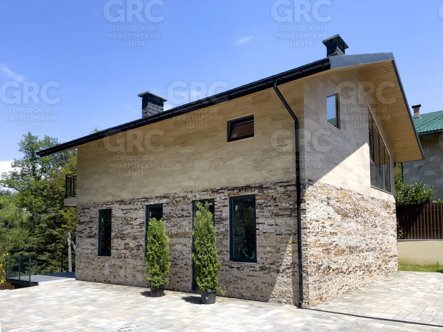 Первый этаж дома включает в себя уютную кухню гостиную, гостевую комнату, санузел и просторную террасу. На втором этаже расположены 3 уютные спальни, санузел и большой балкон, выходящий из двух комнат. А потрясающие и большие окна из алюминиевого профиля даст вам много солнечного света.