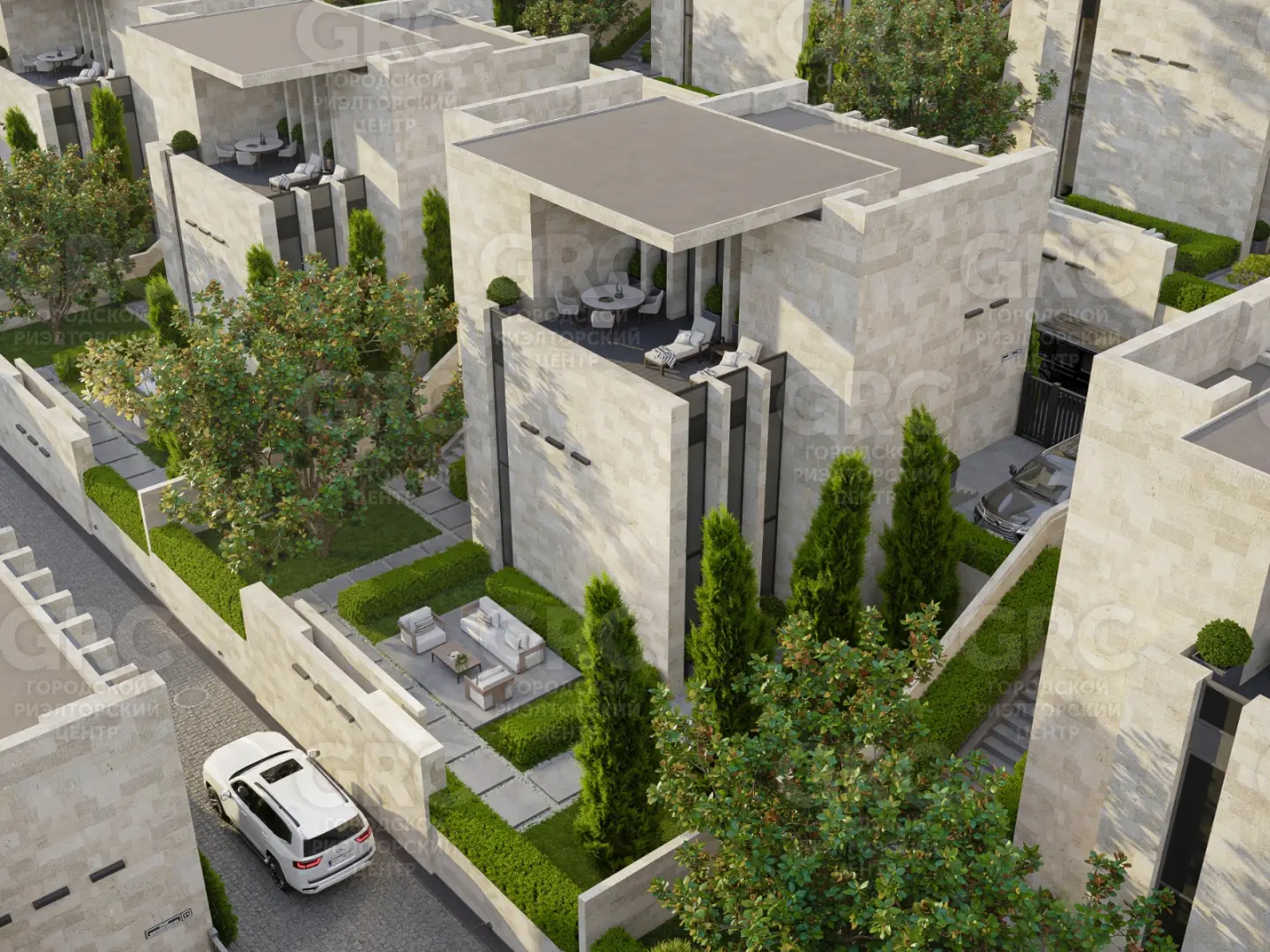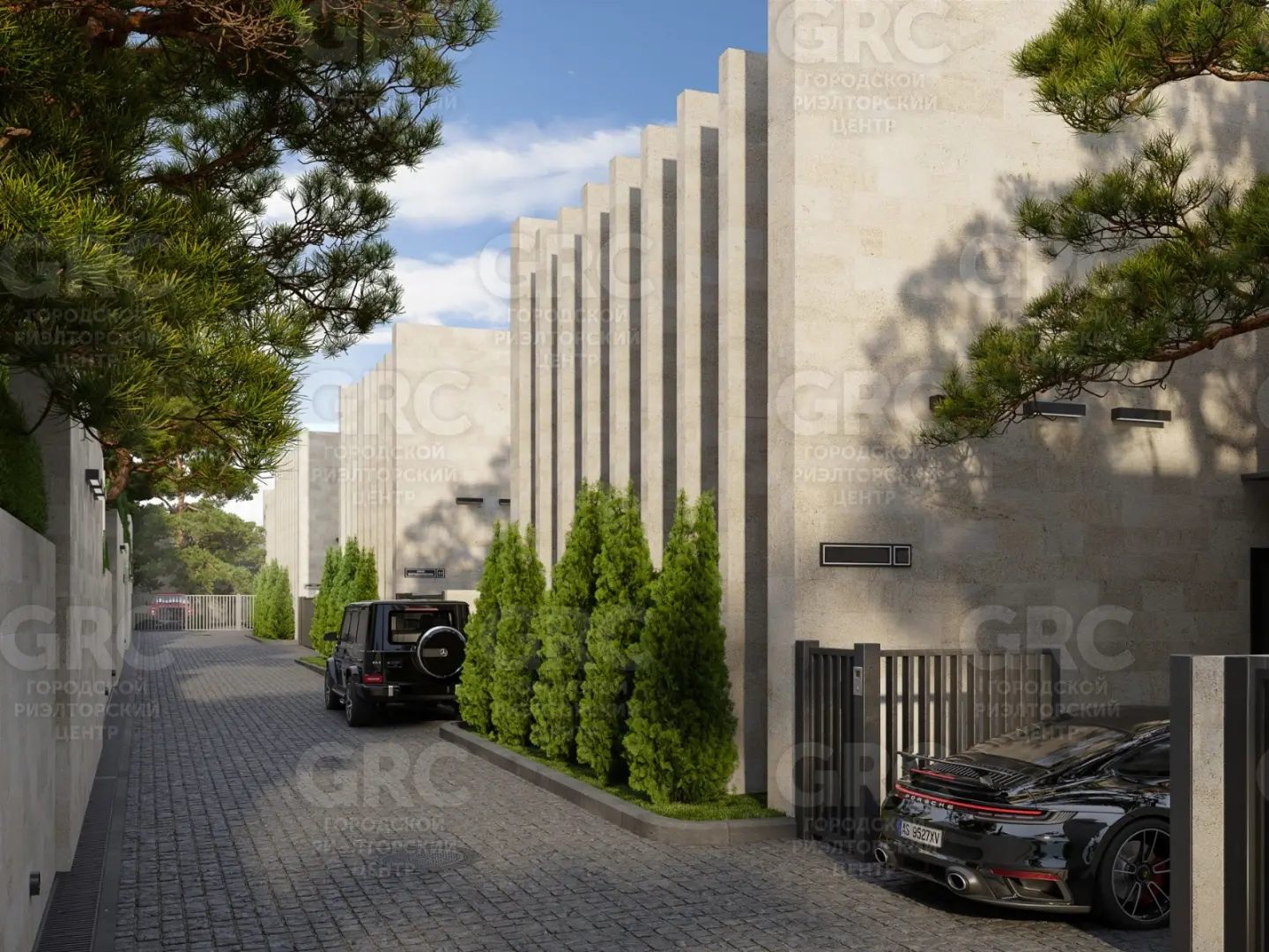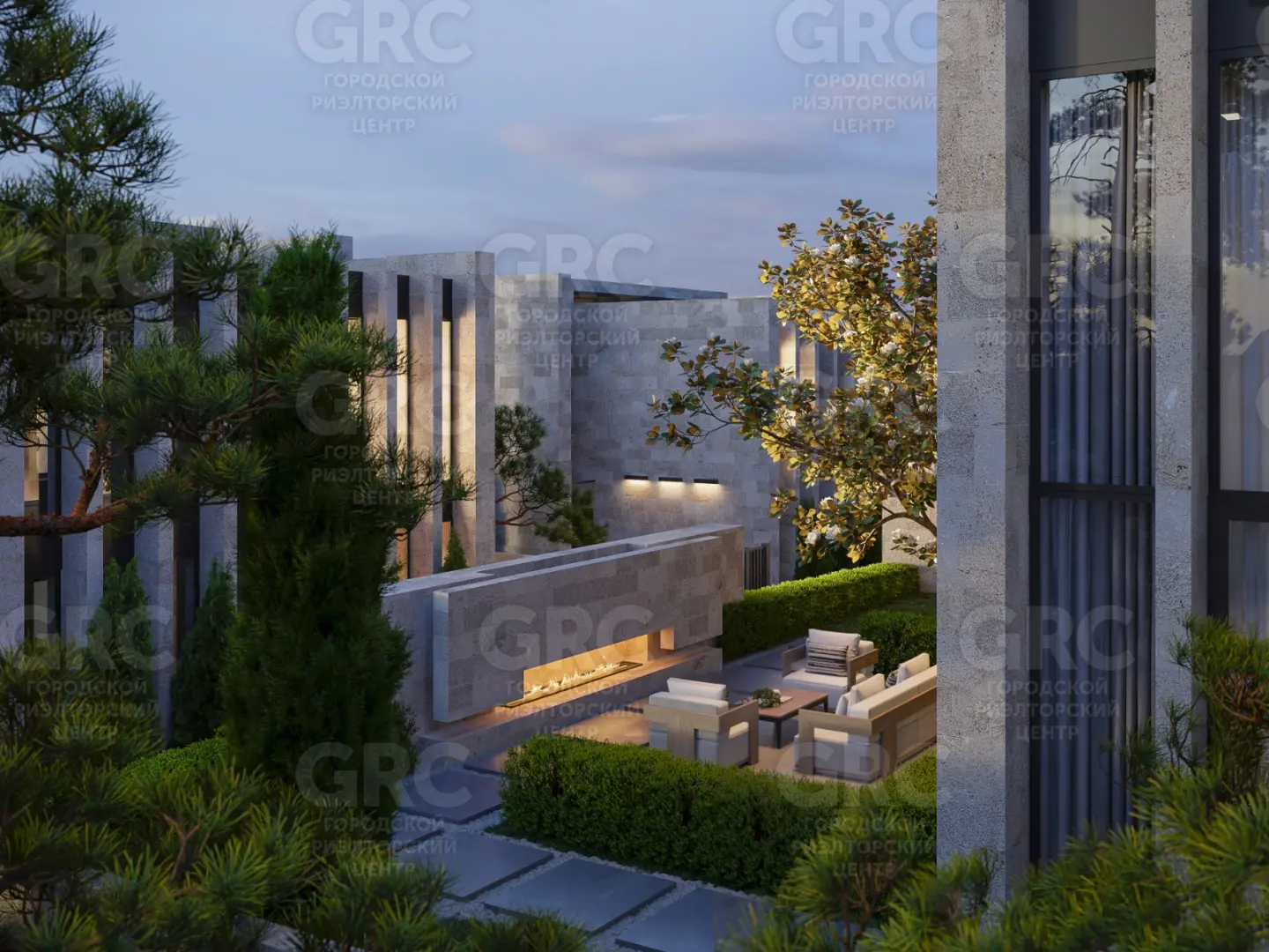 Участок земли, на котором расположен этот коттедж, составляет 4 сотки. На территории есть два парковочных места и собственная лаундж-зона с биокамином, где вы сможете насладиться уютной атмосферой. Ландшафтный дизайн включает в себя вечнозеленые магнолии и кипарисы, которые придают участку особую привлекательность.