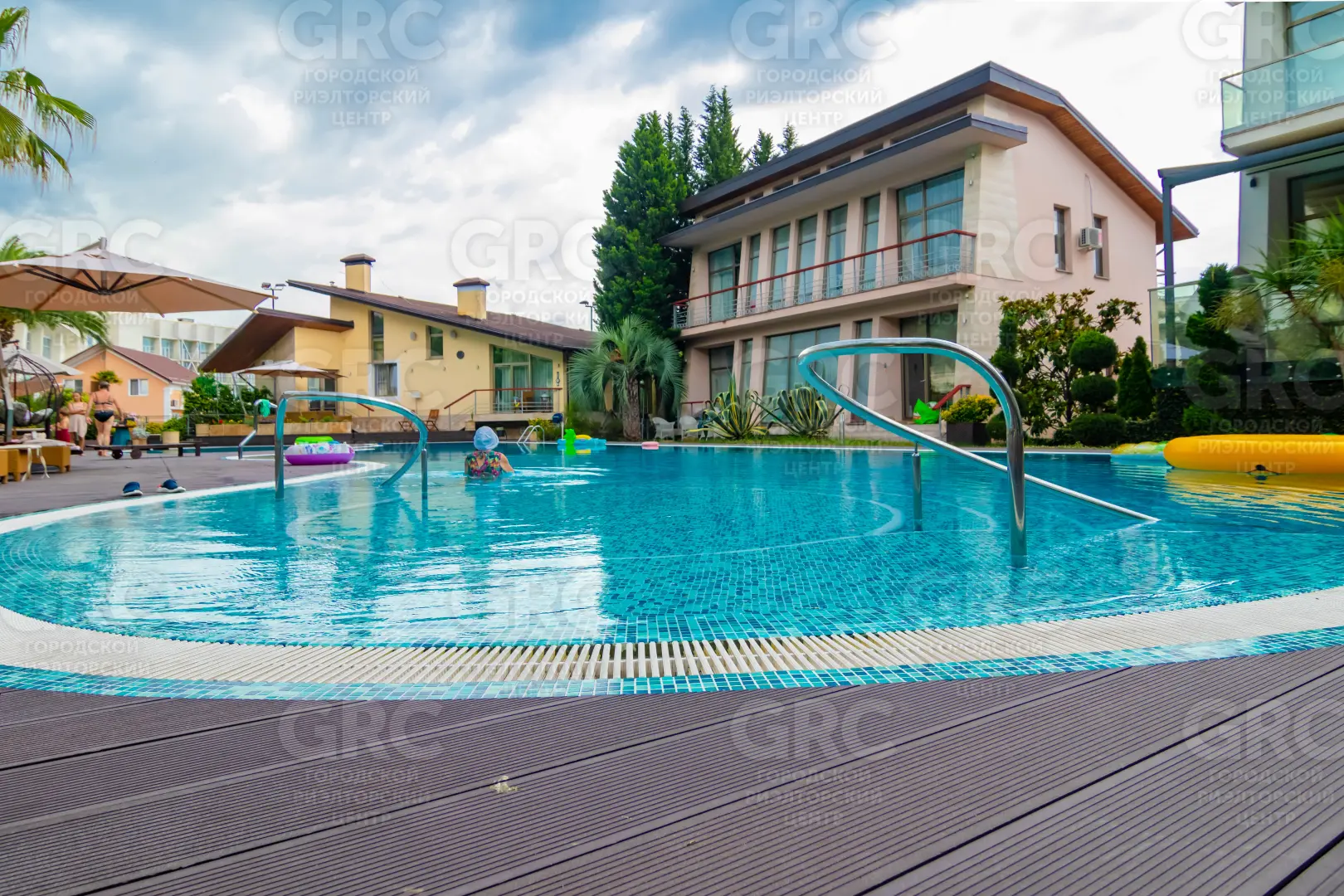 На своей внутренней территории расположены: контрольно-пропускной пункт, ведется видеонаблюдение по территории, открытый бассейн с подогревом, сауна, бильярдная, открытая спортивная площадка с возможностью выбора спорта: теннисный корт, футбол, баскетбол, ресторан с возможностью индивидуально принимать гостей и отмечать праздники, зона барбекю, уединенная в зелени беседка для релакса и занятием йогой.