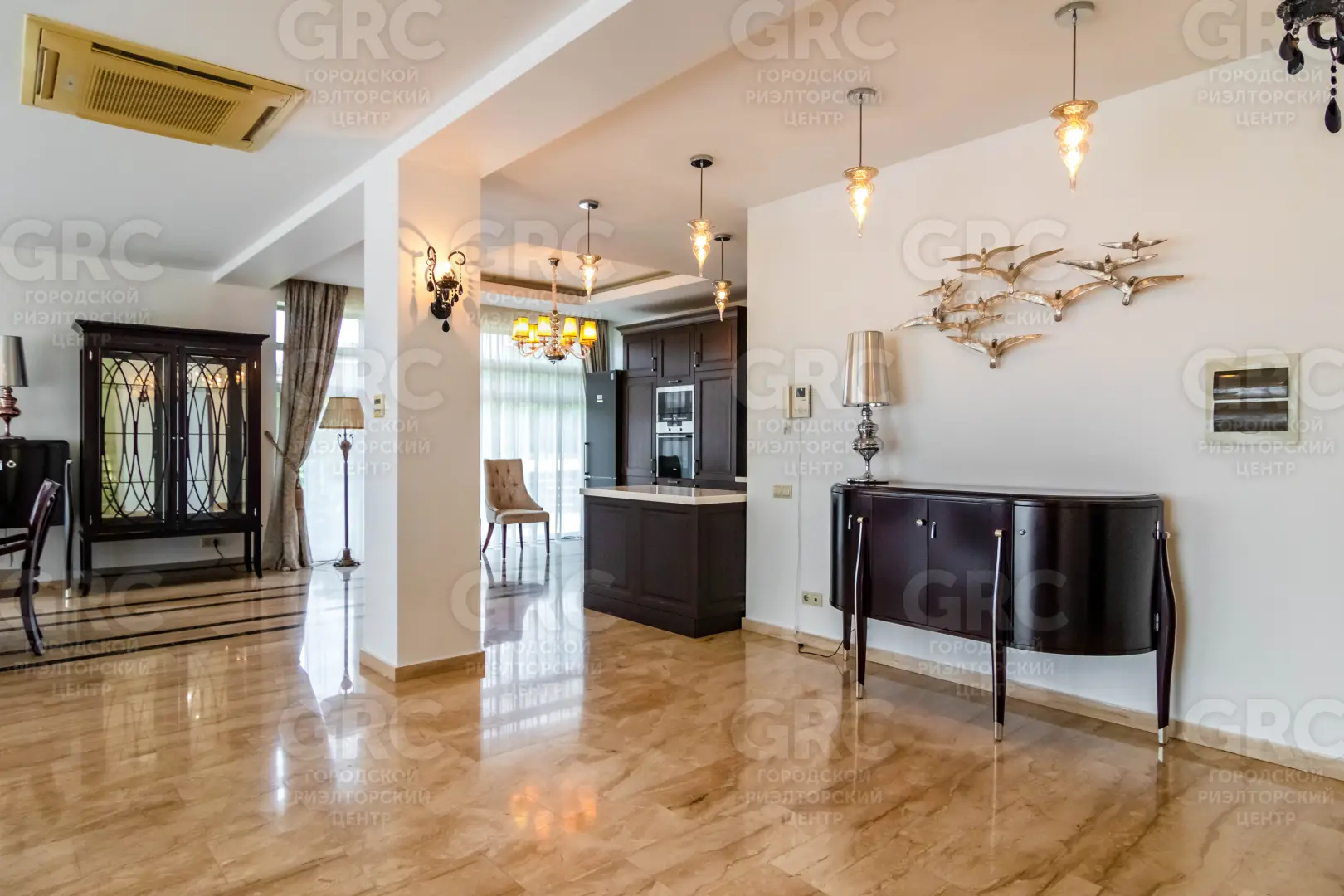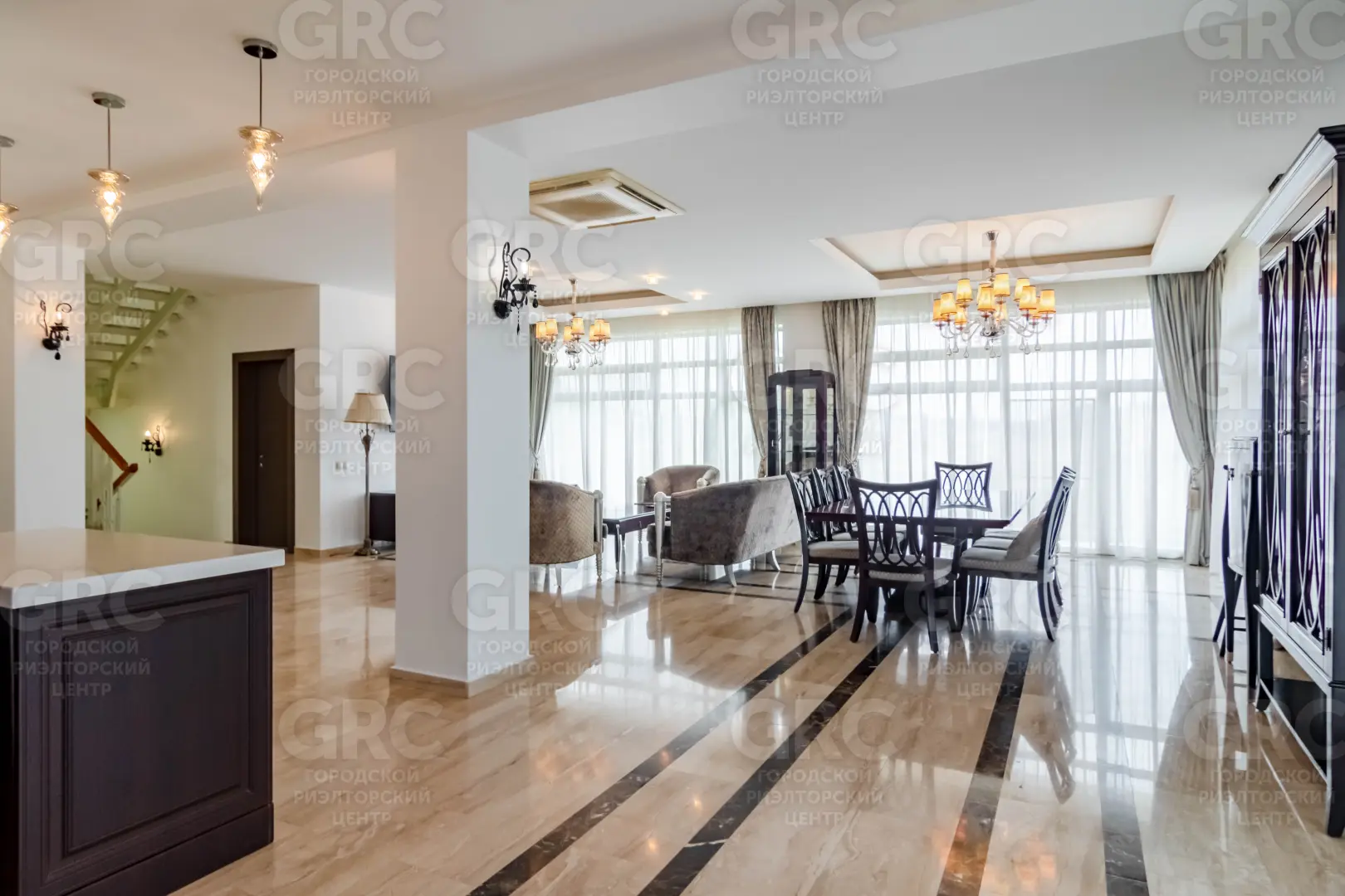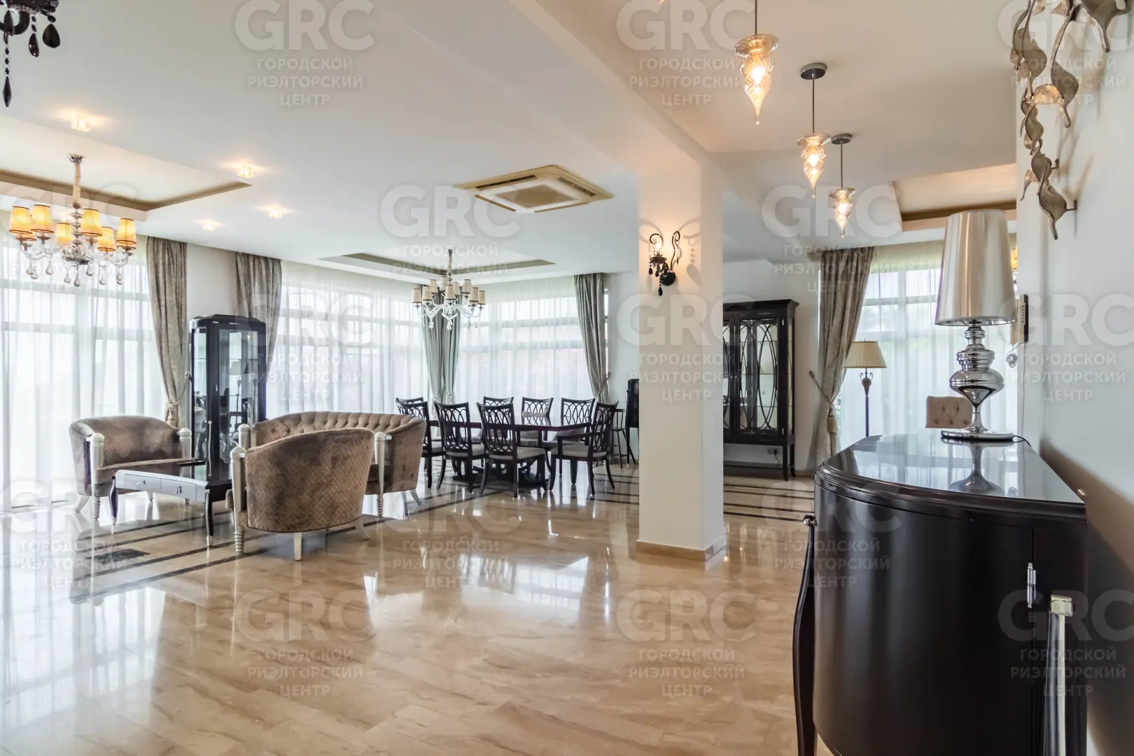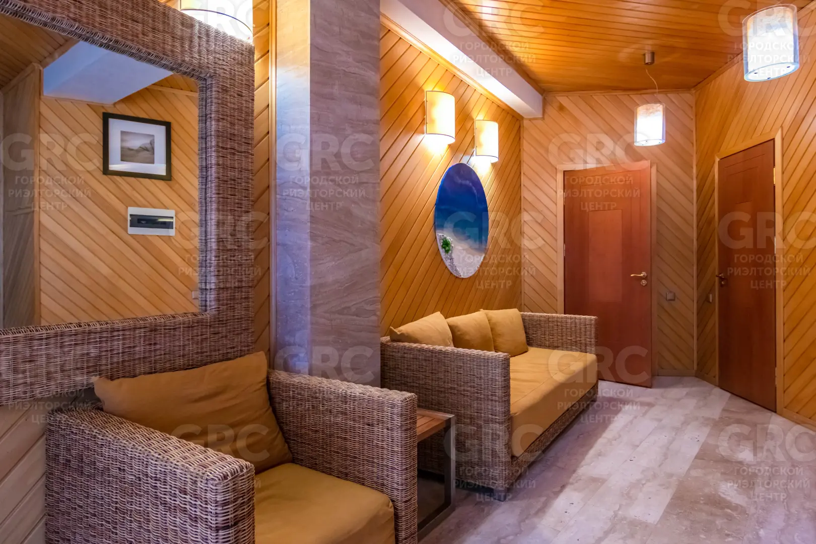В коттедже выполнен дизайнерский ремонт, мебель и отделка - из высококачественных натуральных материалов.