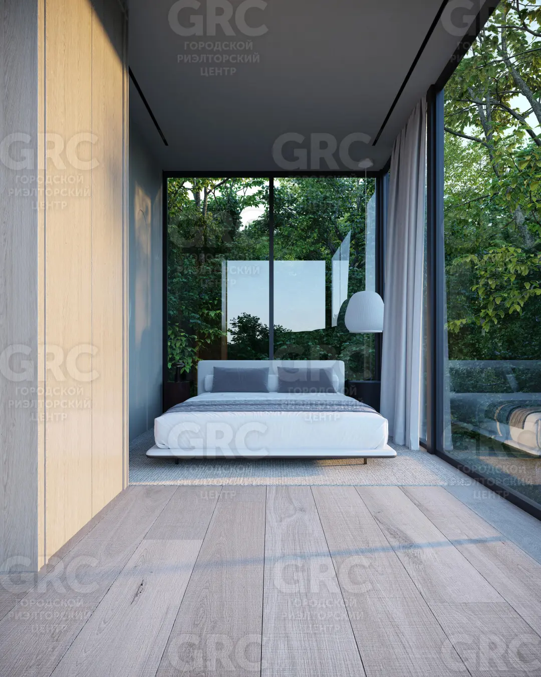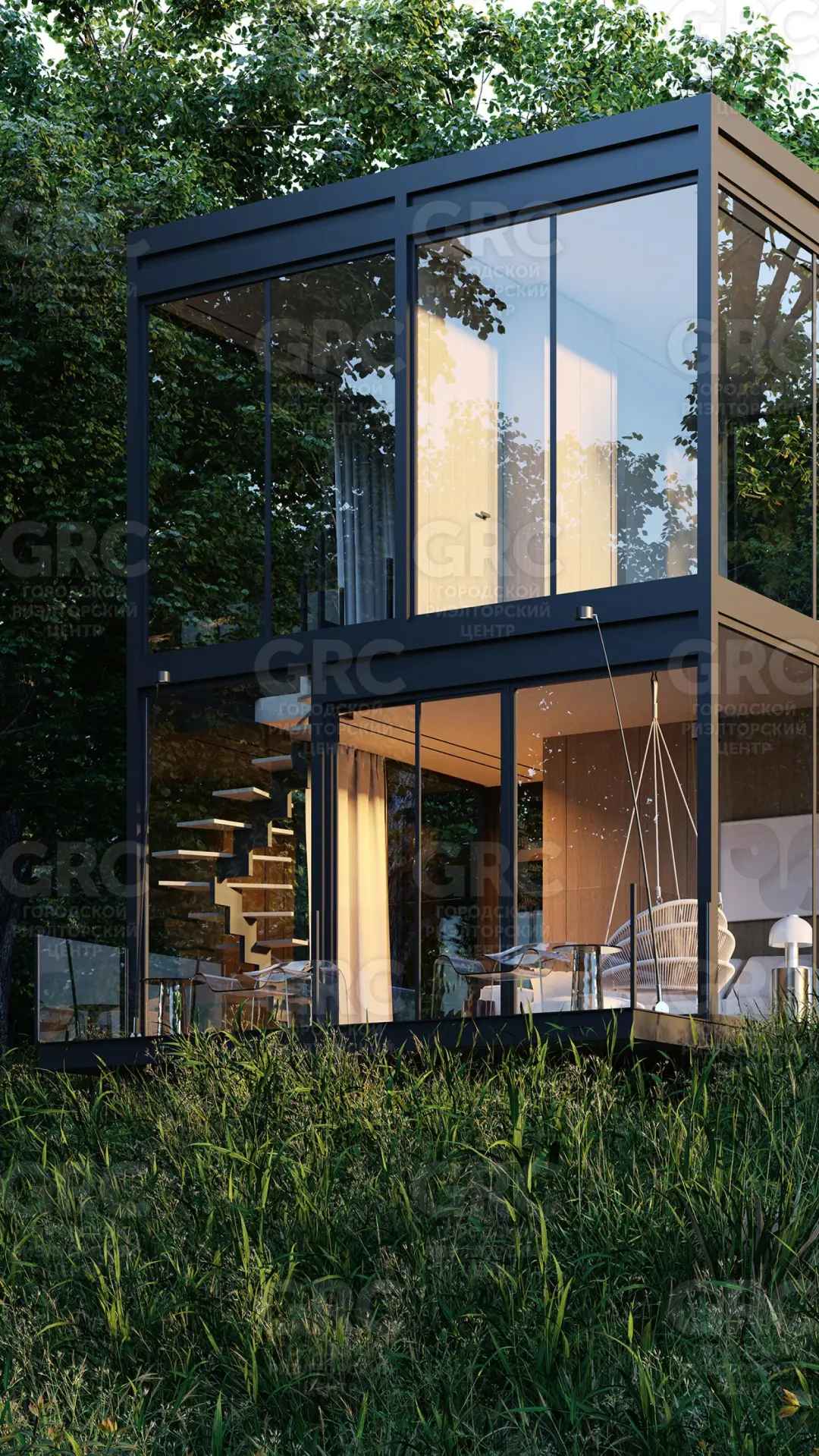 Проект Боско поражает необычной архитектурой. Дома выполнены в минималистичном стиле с черным алюминиевым профилем и полностью прозрачными стеклянными стенами, создавая эффект парения среди деревьев.