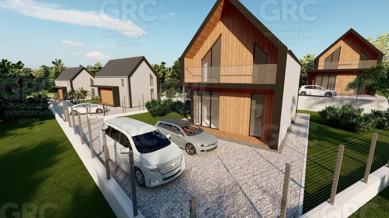 Территория каждого дома огорожена, есть откатные ворота.