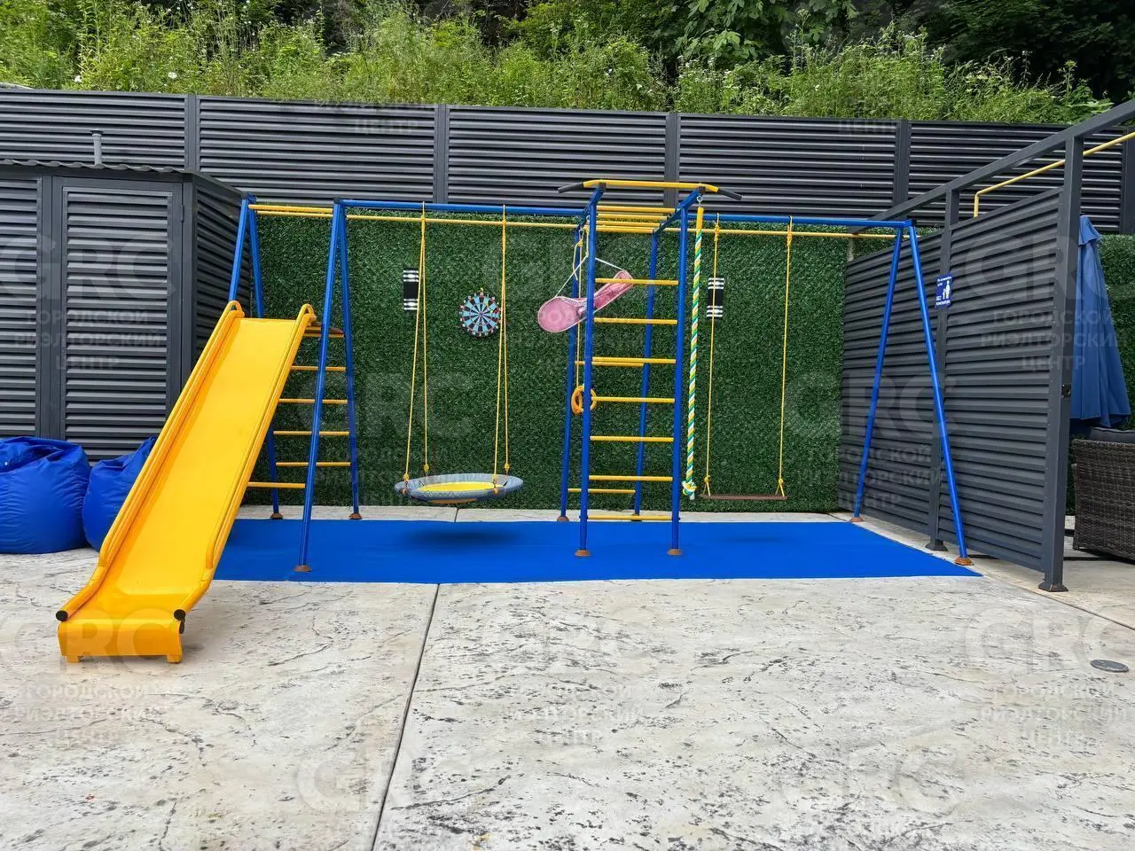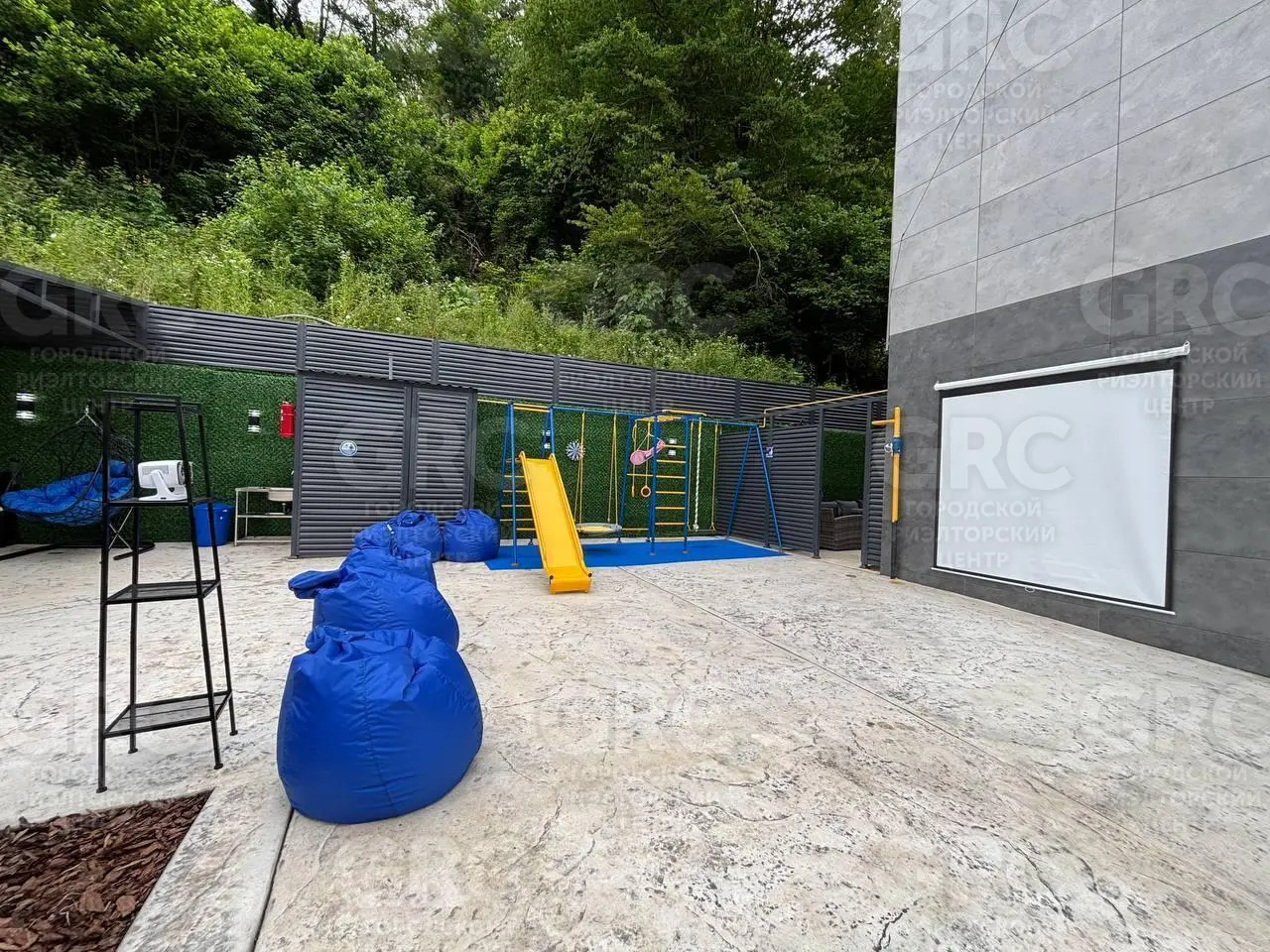 детская площадка, качели, батут, видеопроектор уличный.
