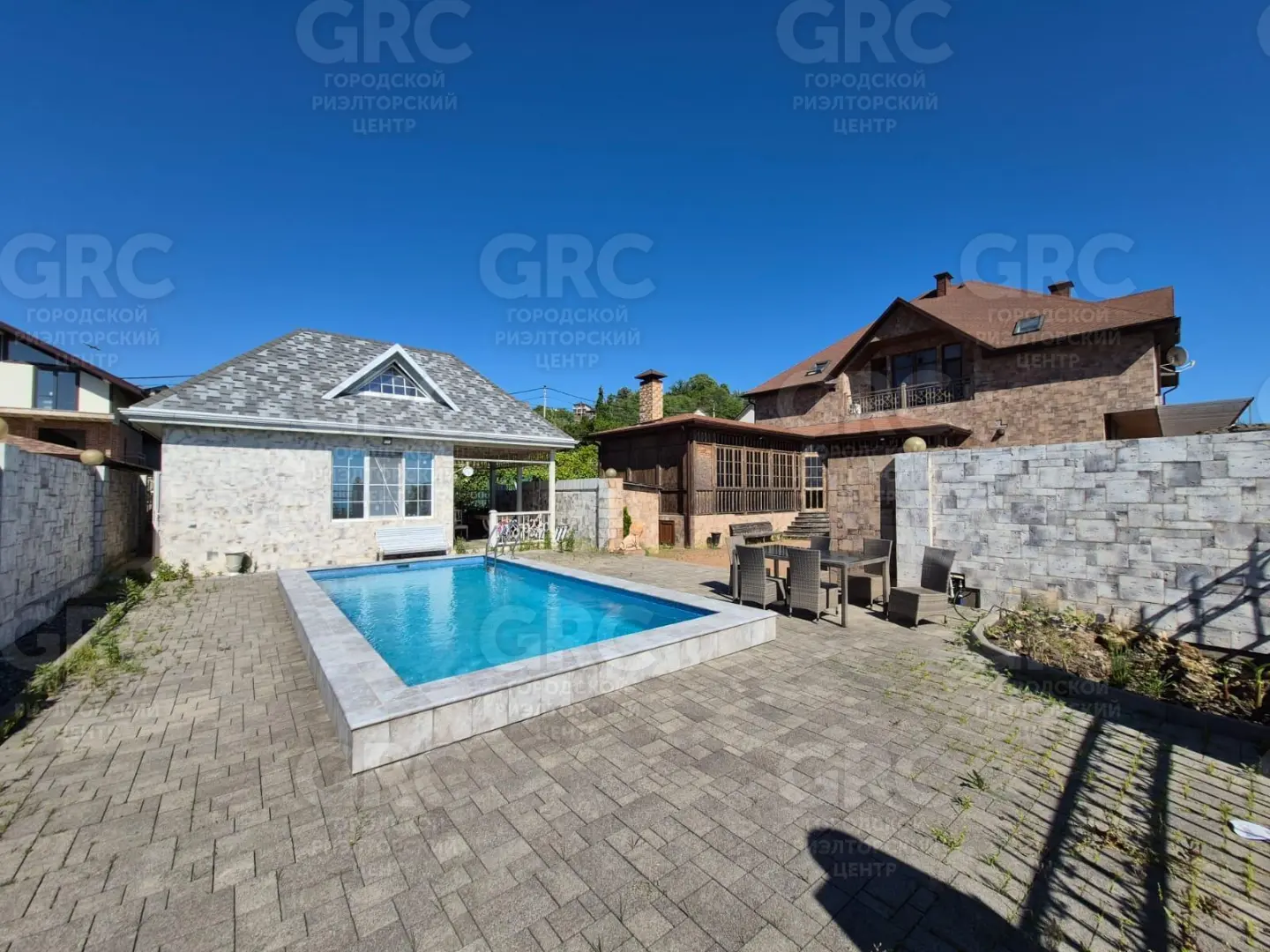 Территория: бассейн, баня с мансардой в черновой отделке, пацха из натурального дерева - лаунж зона, мангал ручной работы, кухня, место для парковки 3 машин, подъезд асфальт - все для жизни с душой!
