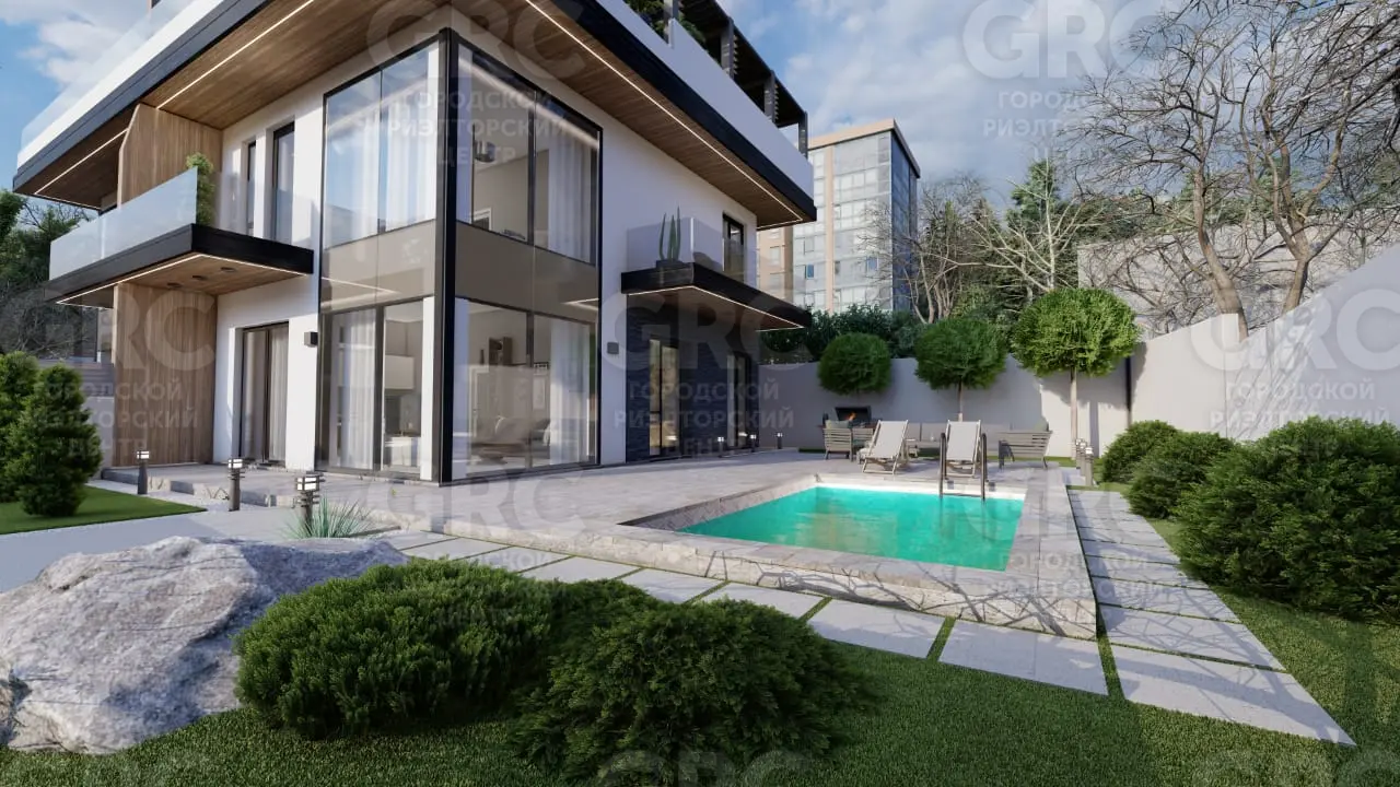 КП «Пальмира» состоит из 12-и дуплексов (свободно 6) в современном архитектурном стиле. Находится в Сочи, район Барановка с видом на море горы. Имеет отличный асфальтированный подъезд и высокоразвитую инфраструктуру. Территория каждого дома полностью благоустроена и приватна. Фасад домов выполнен из высококачественных материалов с использованием мраморной штукатурки Bayramix, все стекления панорамные с алюминиевым профилем фирмы alutech. Высота потолков 3,3 метра. Эксплуатируемая кровля под ключ с выводом всех коммуникаций. S домов 240 - 271 кВ м S зем уч 2 - 2,7 сотки На авто: 10 минут до ТРЦ Моремолл 15 минут до моря 1 минуту до магазина, аптеки 7 минут школа, дет сад 10 минут до центра Сочи Благоустройство территории: Закрытая территория паркинг/гараж на 2 авто Озеленение Бассейн Отделка - черновая Коммуникации: Газ есть Электричество 15 кв Канализация ЛОС Водоснабжение центральная
