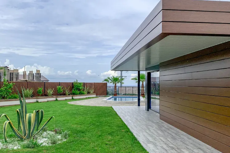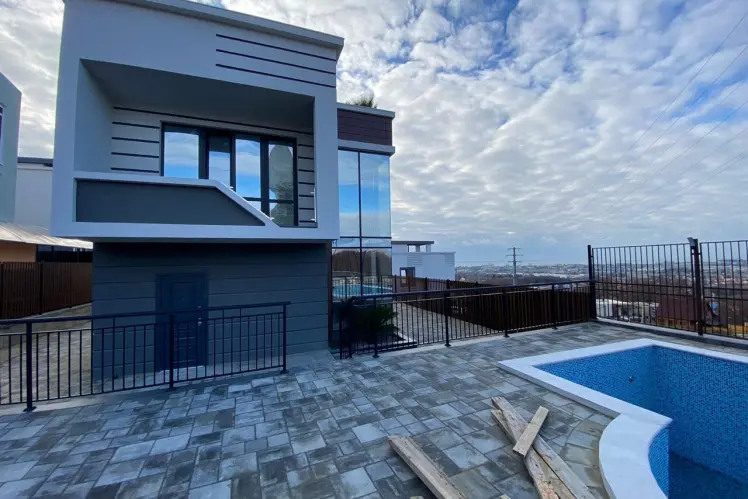КП Панорамный - это современный коттеджный поселок комфорт-класса в стиле Хай Тек. Дома поселка выполнены в едином архитектурном стиле, но у каждого своя изюминка. КП состоит из 6-ти домов, с разной площадью домов, планировок и земельных участков. Видовые характеристики весьма положительные, открывается прекрасный вид на море и город из больших панорамных окон.