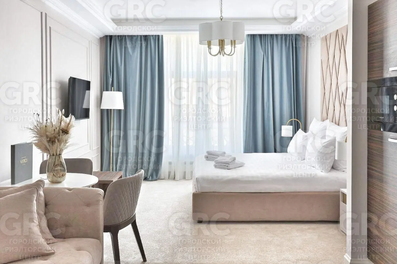 Апартаменты общей площадью 34.2 м² расположены на третьем этаже. Дом клубного типа с небольшим количеством проживающим. За счет этого, всегда есть полная загрузка номеров.