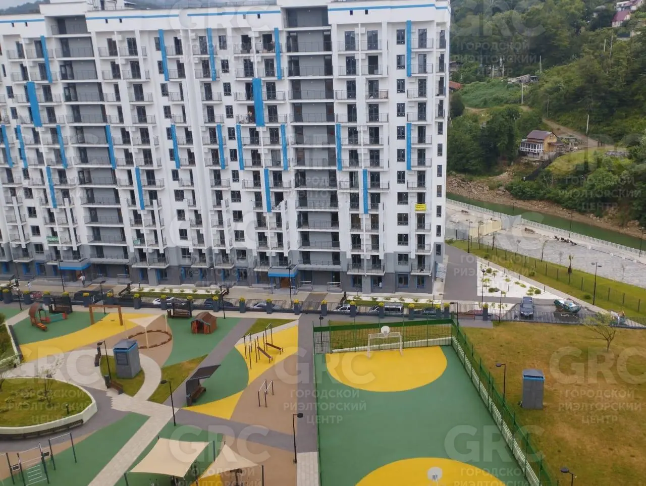 Жилой комплекс расположен на набережной реки, рядом с Тисо-самшитовой рощей на ровной местности. Комплекс состоит из семи домов на закрытой территории с большим количеством бесплатных парковочных мест за шлагбаумом, Придомовая территория оборудована игровыми и спортивными площадками, кортами и зонами отдыха. До моря пешком 25 минут, до аэропорта 20 минут на машине, 16 км до Олимпийского парка, 17 км до центра Сочи.