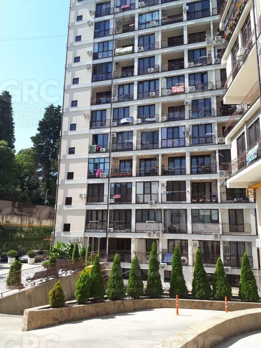Статус квартиры. Полная сумма в договоре. В квартире 18,6 м2 , это студия с ремонтом, мебелью + большой балкон. Итого площадь 23,5 м2. Отопление и горячая вода от двухконтурного газового котла. Вид с балкона на лесопарковую зону. Жилищный комплекс «РОМАНОВСКИЙ» расположен в самом экологичном , самом «зеленом» месте центрального района Большого Сочи, в парковой зоне, по улице Санаторная. Можно сказать, что комплекс утопает в зелени и насаждениях. Состоит комплекс из пяти 12-и этажных многоквартирных домов.
