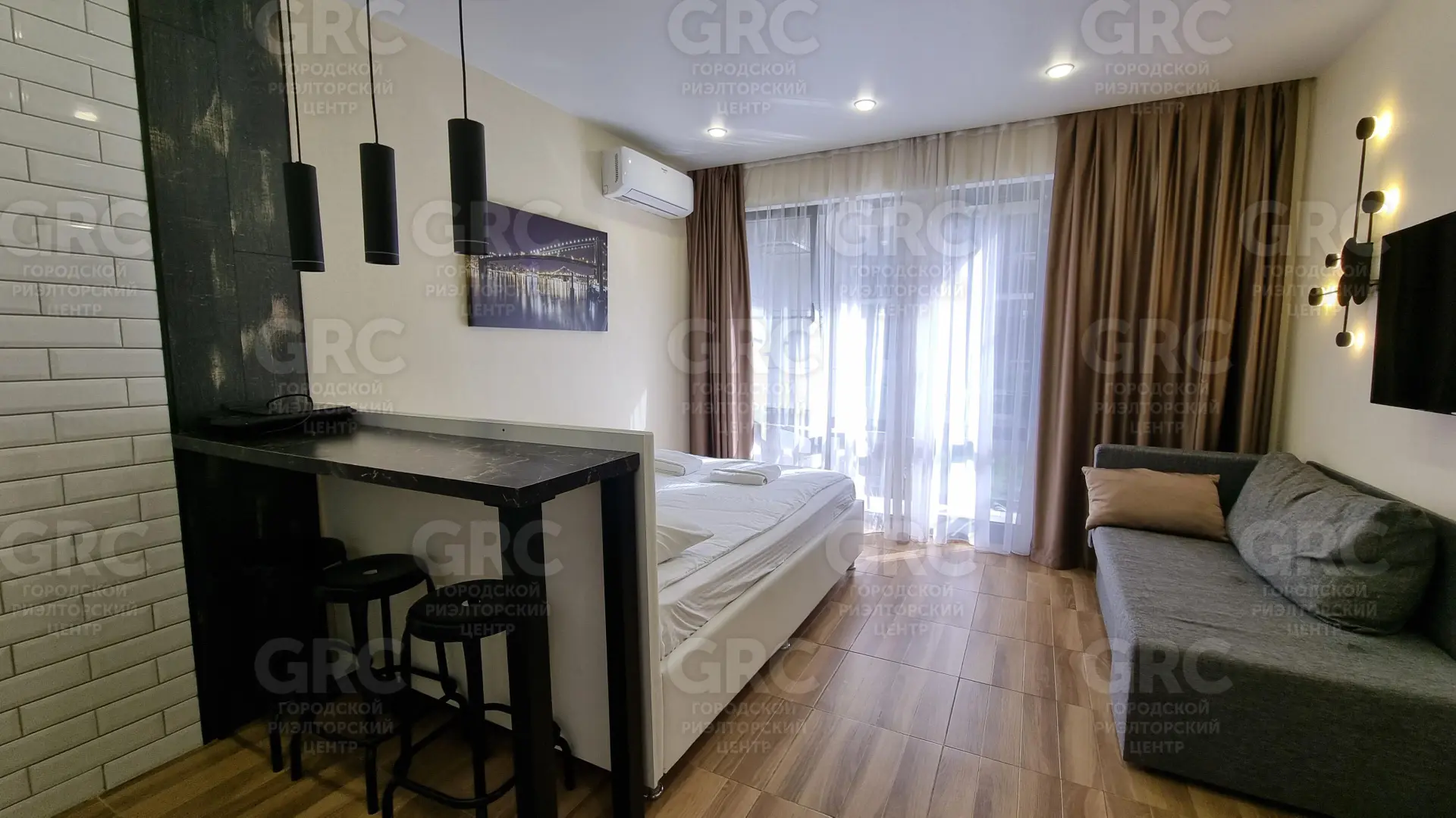 Общая площадь к продаже 25 м. кв. Апартаменты студийного типа с балконом! В современном стильном решении, мебелью и техникой. Рядом бассейн. Вид на парковую территорию.