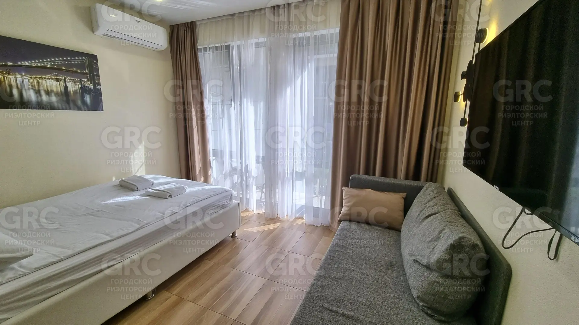 Общая площадь к продаже 25 м. кв. Апартаменты студийного типа с балконом! В современном стильном решении, мебелью и техникой. Рядом бассейн. Вид на парковую территорию.