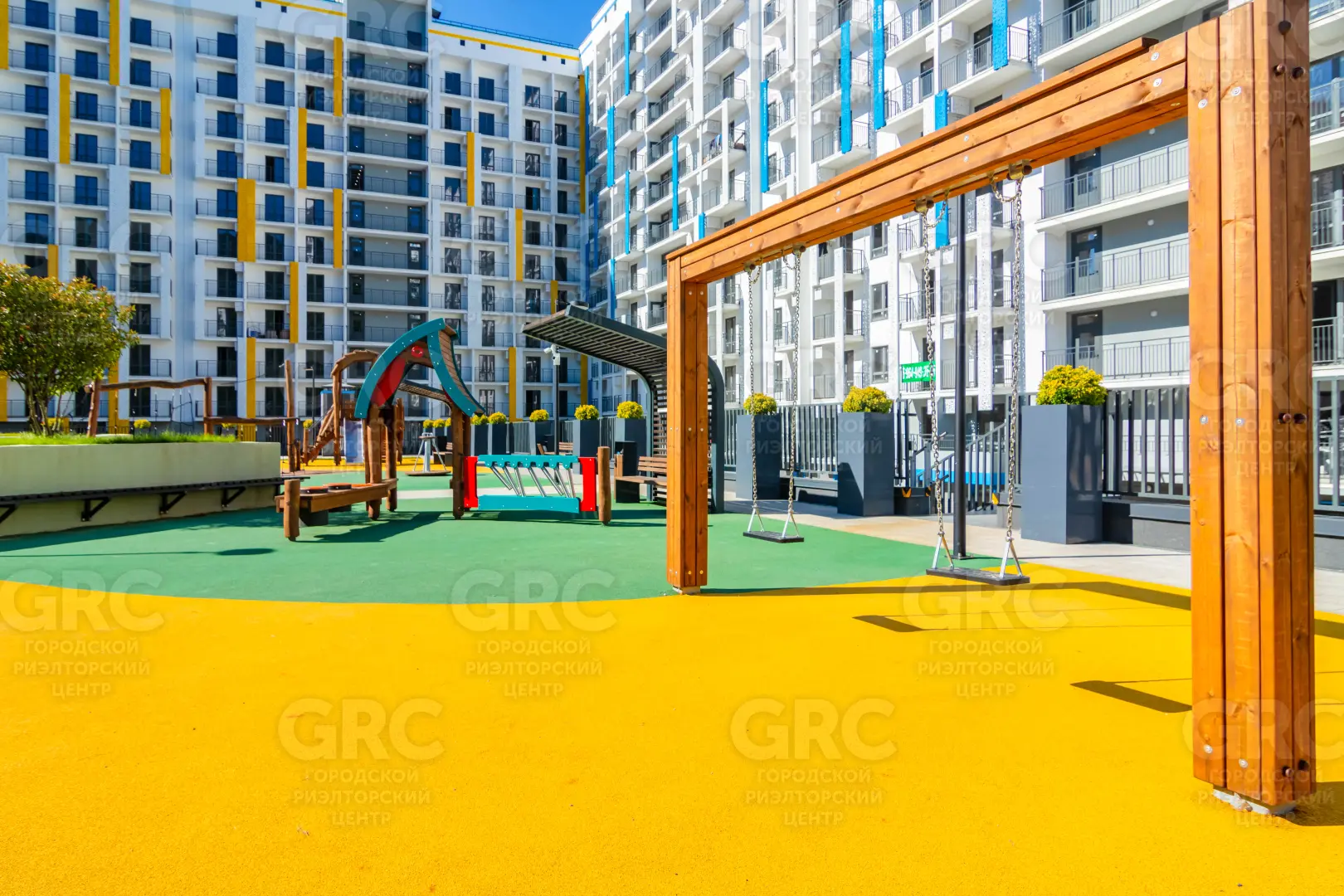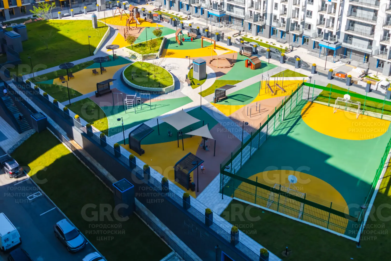 Сам ЖК состоит 7 корпусов, объединенных одной территорией, где расположены детские, спортивные площадки, прогулочные зоны.