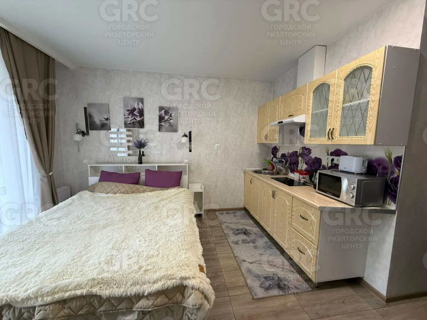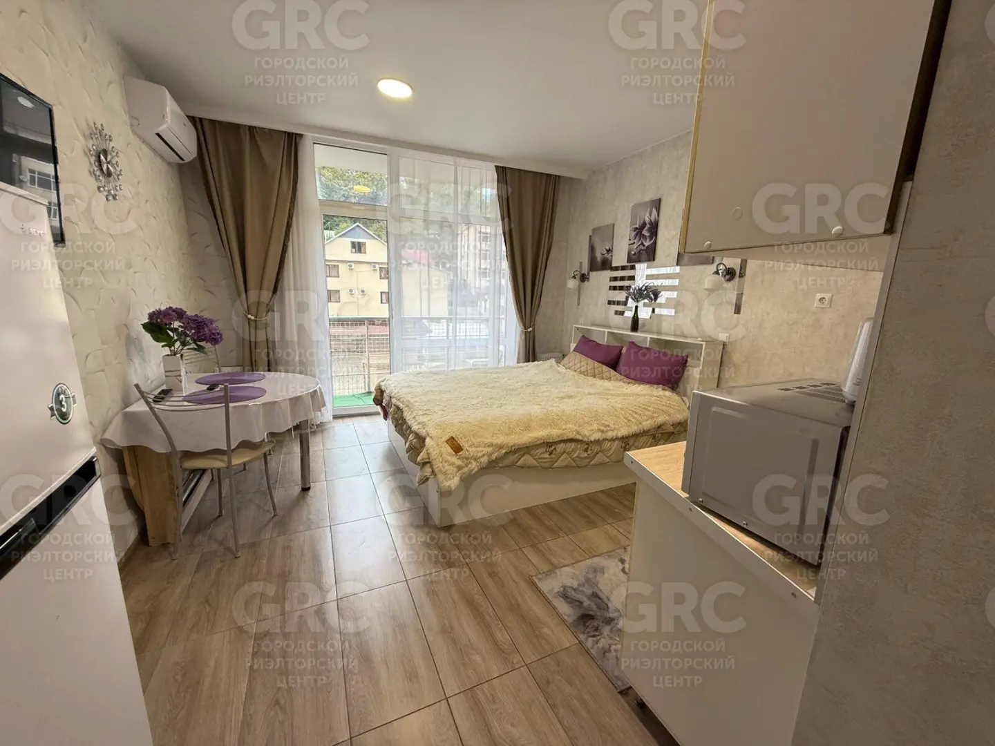 Студия полностью готова к проживанию: выполнен качественный ремонт, установлена современная мебель и вся необходимая техника. Интерьер оформлен в светлых тонах, создающих атмосферу уюта и комфорта. Благодаря удачной планировке, пространство использовано максимально эффективно.