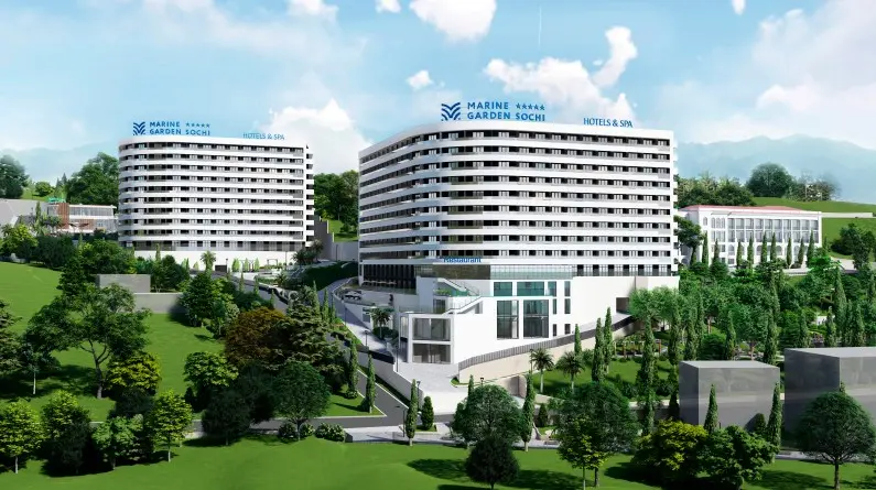 Marine Garden Sochi Hotels & Spa 5* - гостиничный комплекс с уникальной архитектурой, впечатляющим природным ландшафтом, красивейшими видами на море и горы, высоким качеством отделки, оригинальным освещением и дизайнерскими номерами, отвечающие международным стандартам комфорта первоклассного отеля. Пересмотрите ваши ожидания и инвестируйте в стабильное будущее в городе Сочи. Marine Garden Sochi Hotels & Spa 5* расположился в красивейшей зеленой парковой зоне с историческим наследием, реликтовыми субтропическими растениями и экзотическими цветами. По всей территории комплекса благоустроенная территория площадью 2,8 Га с ландшафтным дизайном, фантастические виды на море, уединенные зоны отдыха, спортивные и детские площадки - здесь будет так приятно проводить время и насладиться каждой минутой вашего отдыха.