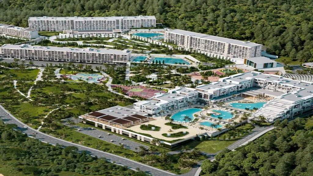 Инфраструктура: Более 10 ресторанов на территории с 3-х разовым питанием, 6 бассейнов, спа комплекс; термальный комплекс, медицинский центр, салон красоты, Work-out зона, Glamping-парк, веревочный парк; Vr-зона, Spray-парк, детские площадки, Sup-станция, школьные классы для длительного отдыха, анимации и мастерклассы для всех возрастов, анимации для всех, паркинг, вертолетная площадка, собственный пляж с инфраструктурой.