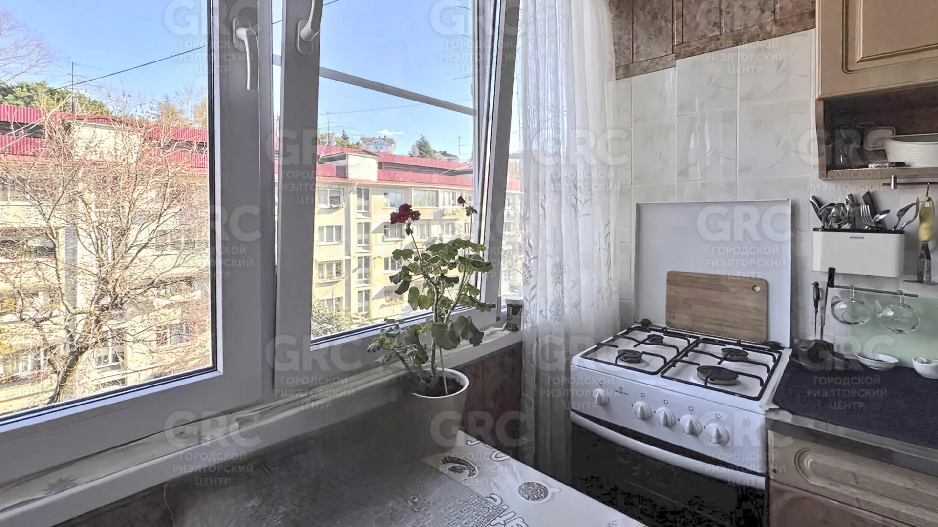 Квартира расположена в Заречном микрорайоне Центрального района Сочи. Это тихий, зеленый район с развитой инфраструктурой и отличной транспортной доступностью.