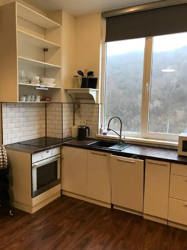 В квартире качественный ремонт и мебель с техникой.
