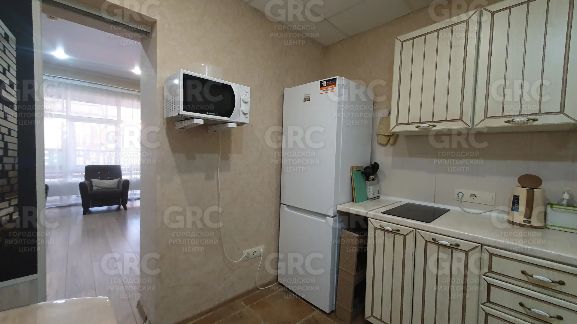- варочная панель, микроволновая печь, холодильник