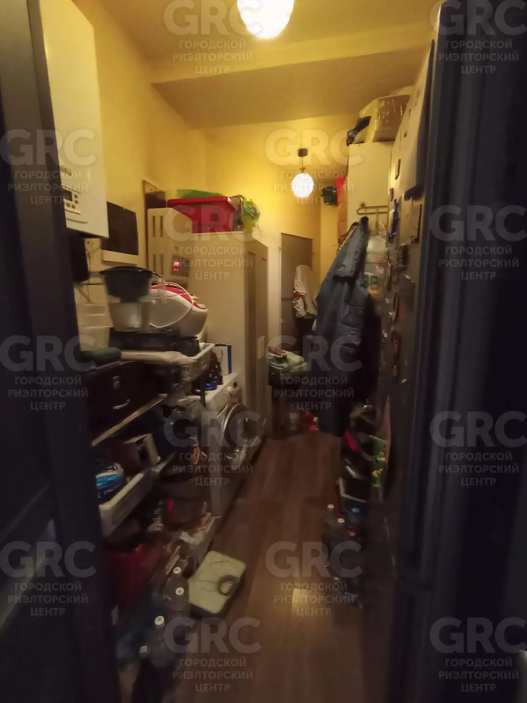 В квартире предусмотрена кладовка-гардеробная площадью 5 м², где удобно размещены газовый котел, стиральная машинка и шкаф, что обеспечивает комфортное хранение вещей.